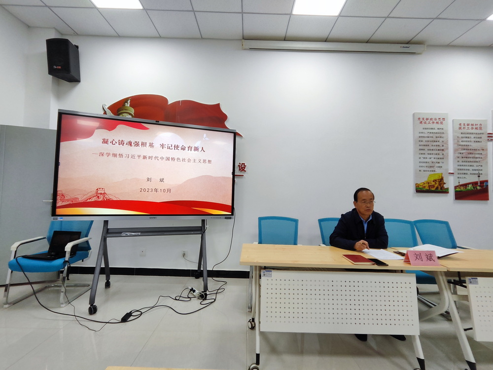 推進會結束后,劉斌書記為全體黨員和群眾開展了題為“凝心鑄魂強根基、牢記使命育新人——深學思悟習近平新時代中國特色社會主義思想”的主題教育專題黨課。黨課圍繞三方面進行,一是要深刻領悟“兩個確立”的決定性意義,堅決做到“兩個維護”,二是要用習近平新時代中國特色社會主義思想凝心鑄魂,三是要用習近平新時代中國特色社會主義思想指導教育事業(yè),推動教育發(fā)展。