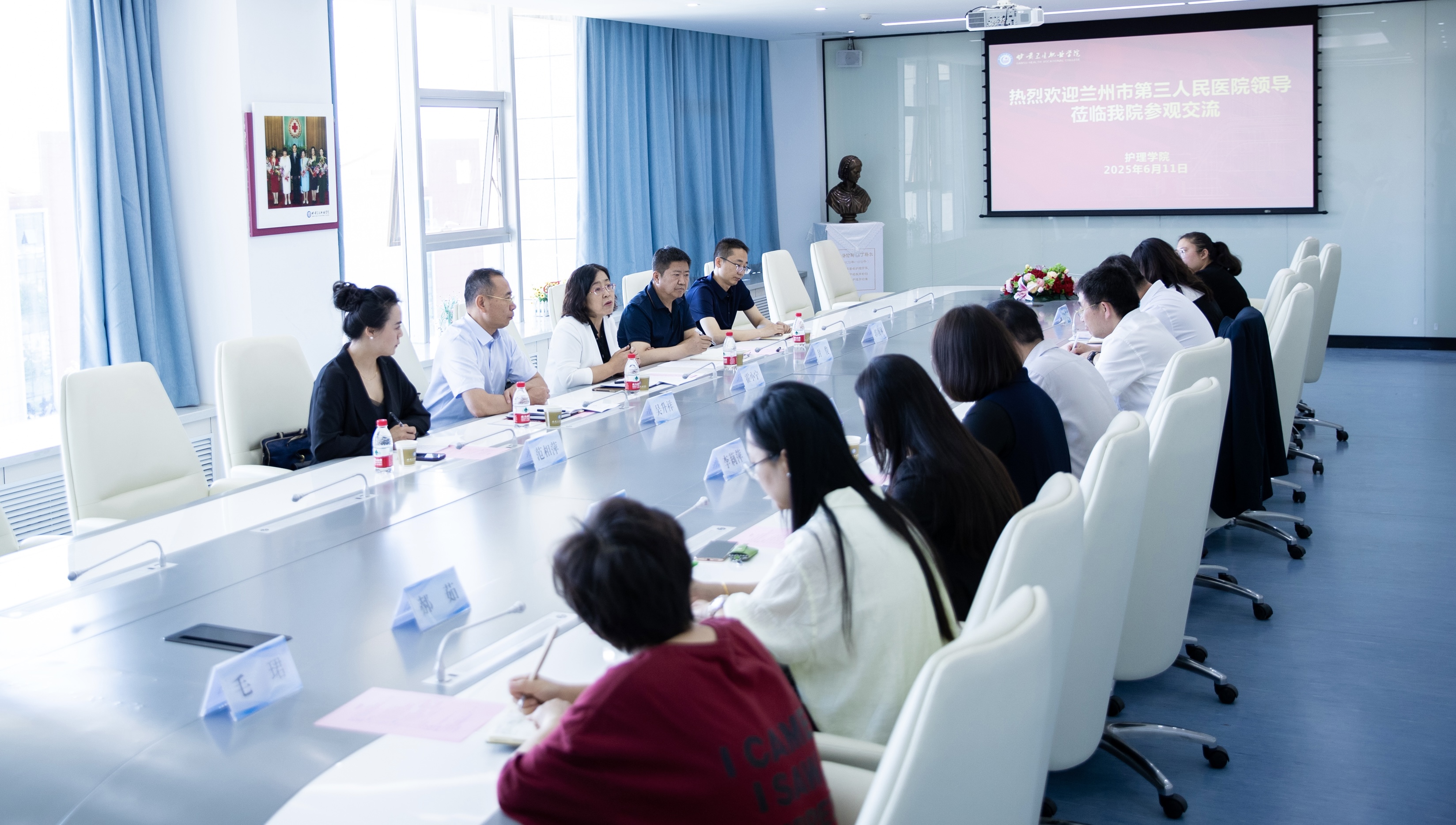 6月11日,蘭州市第三人民醫(yī)院院長(zhǎng)霍小寧,副院長(zhǎng)封俊、吳昇祥一行來(lái)學(xué)校開(kāi)展交流活動(dòng),校長(zhǎng)王建成、學(xué)校辦公室、護(hù)理學(xué)院參加座談交流。