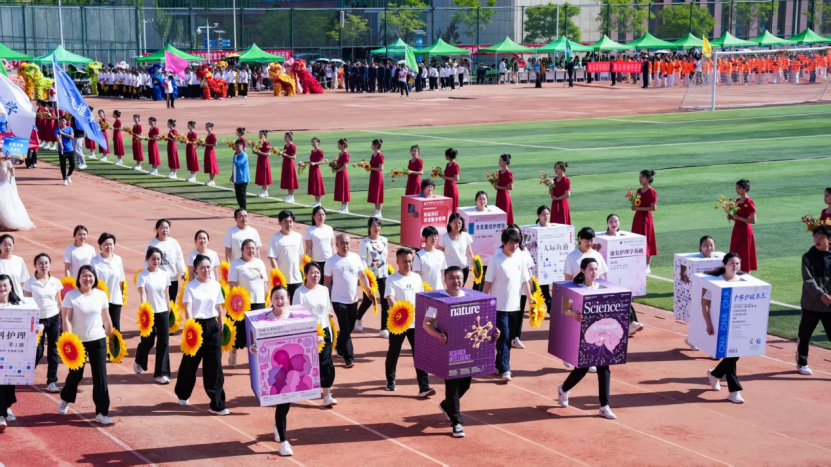 開幕式上,除了常規(guī)的運動員入場式之外,由食堂廚師、物業(yè)人員和超市職工組成的服務保障方隊、學生社團方隊及各專業(yè)特色展示方隊成為亮點,充分展示了多彩的校園文化及學校“五育并舉”育人理念。各學院精心編排的百人舞表演更是將愛國愛黨愛校、民族團結、服務健康等思政教育內容巧妙融入。