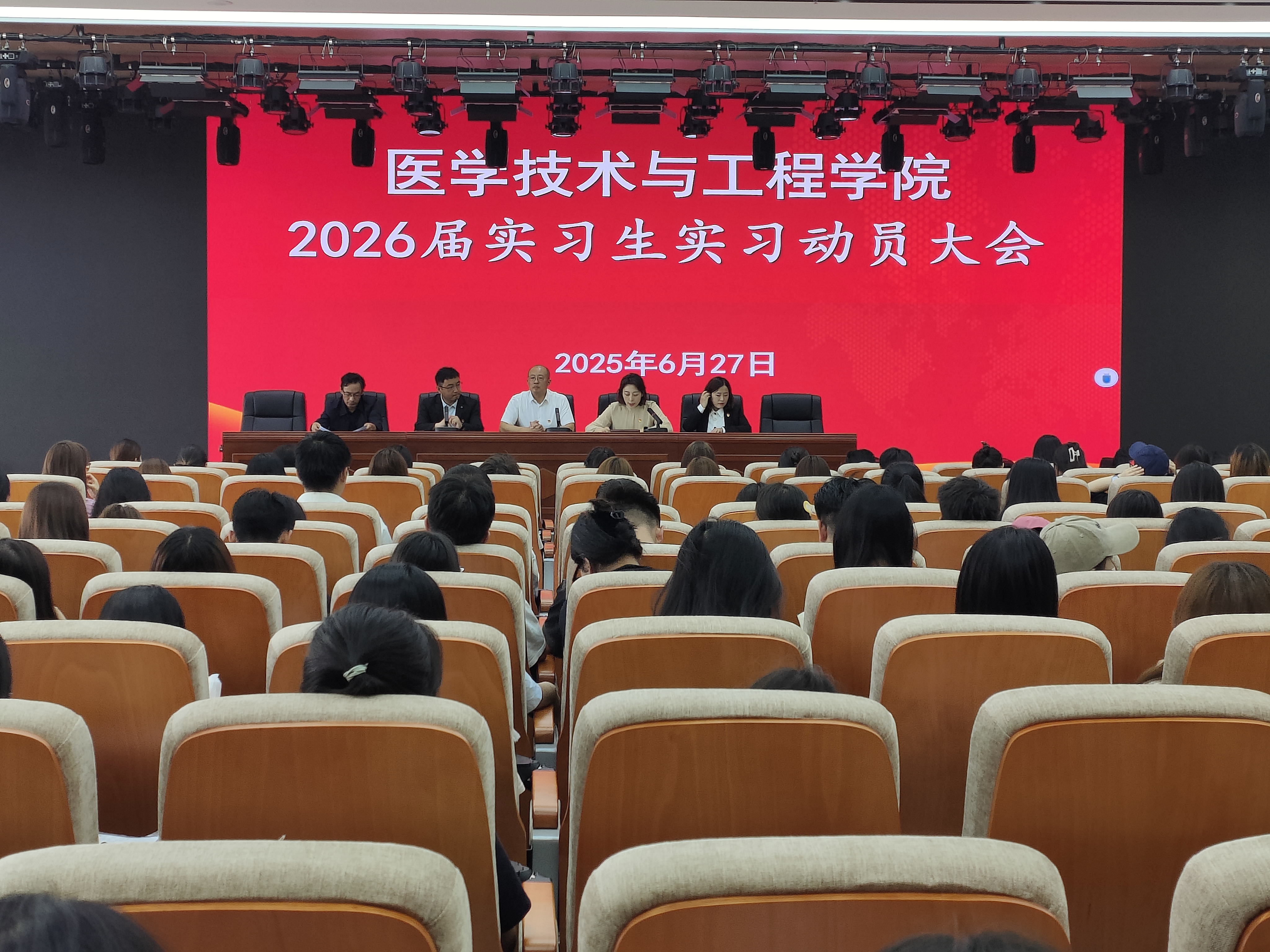 2025年6月27日13時(shí),醫(yī)學(xué)技術(shù)與工程學(xué)院在學(xué)校圖書館4樓多功能報(bào)告廳召開2026屆實(shí)習(xí)生實(shí)習(xí)動(dòng)員教育大會(huì)。學(xué)院領(lǐng)導(dǎo)班子成員、教研室主任、實(shí)習(xí)指導(dǎo)教師、輔導(dǎo)員以及全體2026屆實(shí)習(xí)生參加本次活動(dòng)。