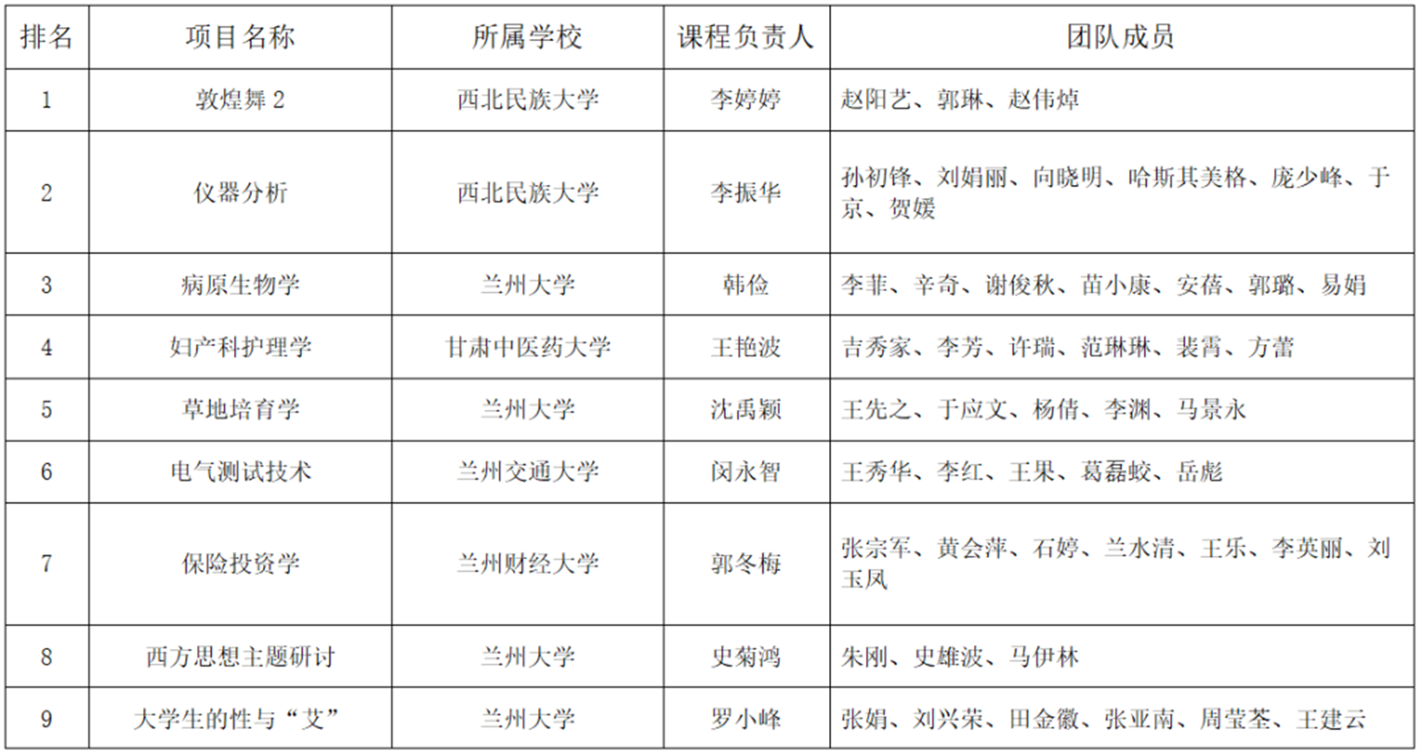 甘肅省第二批高校課程思政示范項目擬立項名單(部分)