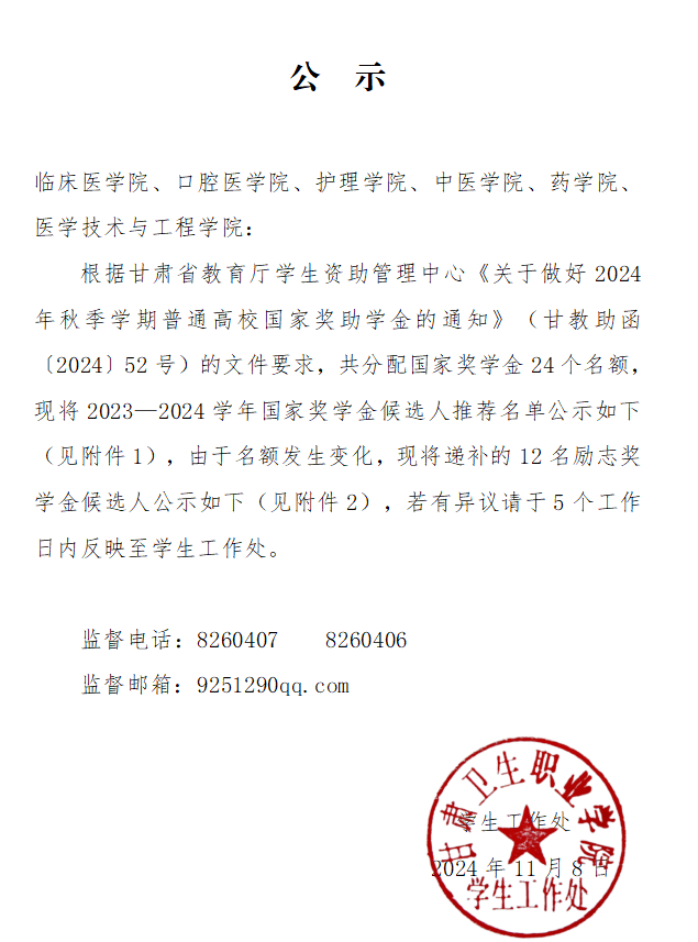 甘肅衛(wèi)生職業(yè)學(xué)院2023-2024學(xué)年高職國(guó)家獎(jiǎng)學(xué)金公示