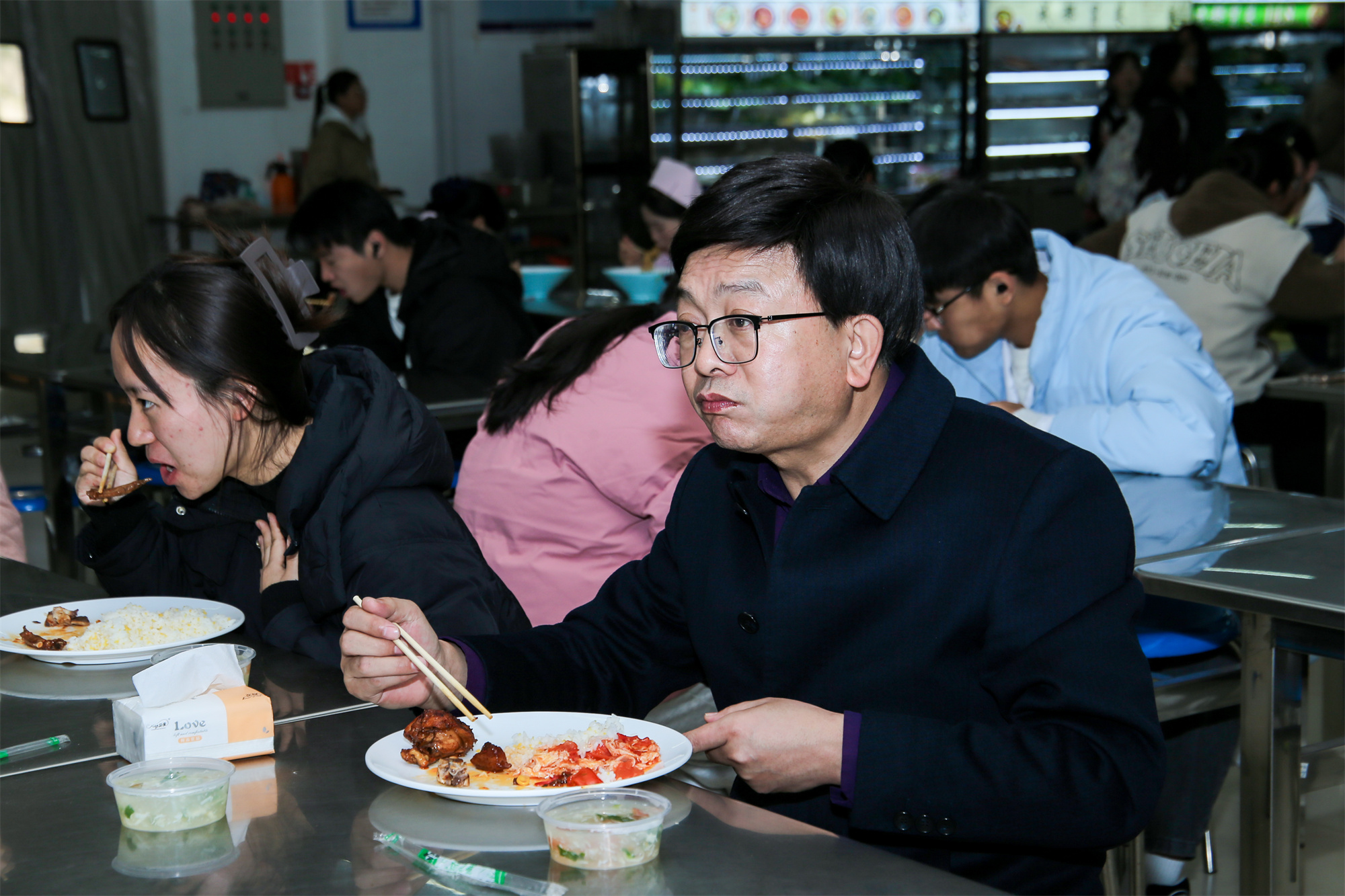 黨委書記包磊陪餐后在與相關(guān)部門負(fù)責(zé)人交談時(shí)強(qiáng)調(diào),學(xué)校將校領(lǐng)導(dǎo)陪餐作為改進(jìn)餐廳服務(wù)質(zhì)量、提升伙食管理水平、保障食品安全的有力抓手,經(jīng)常性開(kāi)展,常態(tài)化進(jìn)行。大家要進(jìn)一步提高思想認(rèn)識(shí),加強(qiáng)學(xué)習(xí),時(shí)刻緊繃食品安全這根弦,不斷完善餐飲監(jiān)管機(jī)制,細(xì)化工作措施,層層壓實(shí)食品安全責(zé)任,落實(shí)可追溯的具體崗位人員,拓寬投訴反饋渠道,形成人人有責(zé)、人人盡責(zé)的工作格局,從嚴(yán)從實(shí)從細(xì)抓好食品安全衛(wèi)生工作,堅(jiān)決筑牢食品安全每一道防線,全面提升廣大師生的滿意度和幸福感。