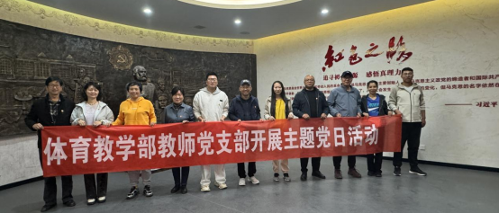 其次在馬克思主義學院紅色文化教育實踐基地開展“賡續(xù)紅色血脈 踐行育人使命”主題黨日活動。為深化黨史學習教育、強化黨性修養(yǎng),活動通過實地參觀、重溫誓詞、沉浸式學習等方式,推動黨史教育與體育育人深度融合,激發(fā)黨員教師的責任感與使命感。