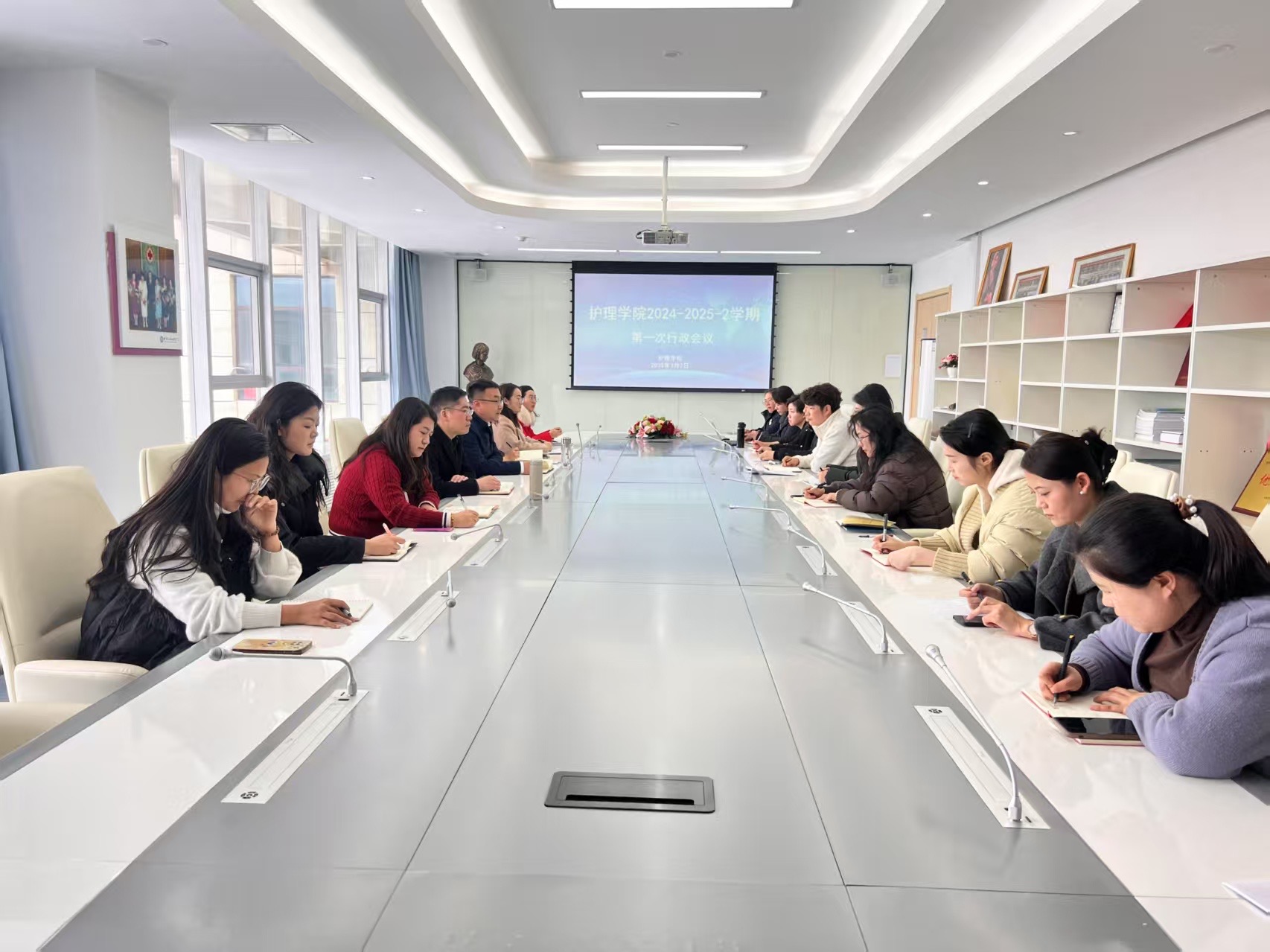 3月2日,護(hù)理學(xué)院召開2024-2025學(xué)年第二學(xué)期第一次行政會(huì)議,傳達(dá)了學(xué)校2024-2025學(xué)年第二學(xué)期開學(xué)第一會(huì)就業(yè)及教學(xué)工作會(huì)議精神。會(huì)上,對(duì)新學(xué)期工作進(jìn)行全面部署,涵蓋黨建、教學(xué)、科研、實(shí)習(xí)就業(yè)、學(xué)生管理等多方面,鼓勵(lì)全體行政教師以飽滿熱情與積極態(tài)度投入工作。