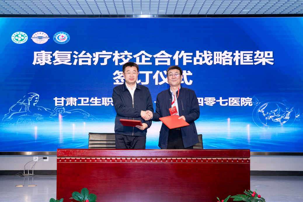 成立大會(huì)上,作為共同體第一期重點(diǎn)工作,甘肅衛(wèi)生職業(yè)學(xué)院與天水四零七醫(yī)院簽訂合作戰(zhàn)略框架協(xié)議。大會(huì)同步成立康復(fù)治療技術(shù)專業(yè)建設(shè)委員會(huì)和聯(lián)合教研室,為聯(lián)合教研室代表授牌,為教研室主任、教研室副主任代表頒發(fā)聘書。
