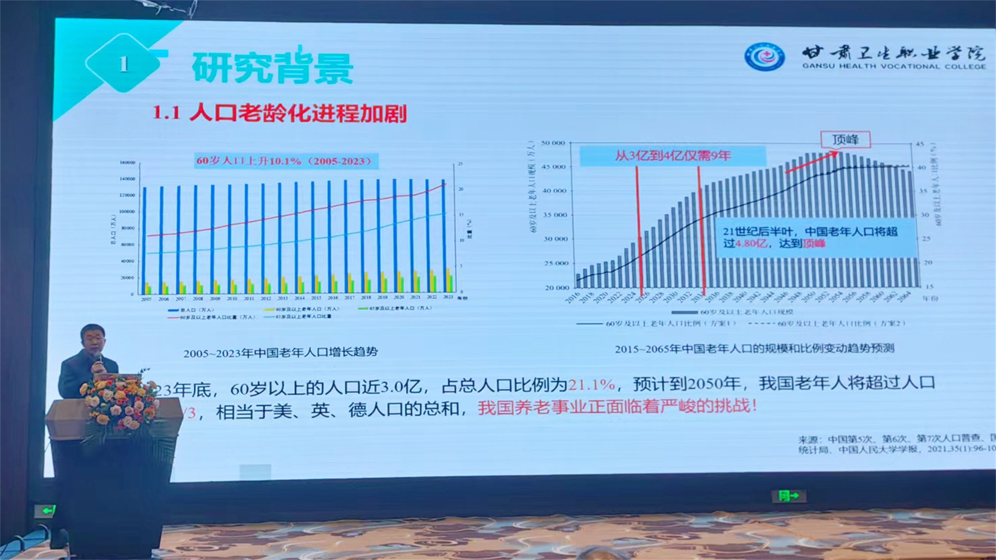 11月1日至2日,甘肅省醫(yī)藥健康產(chǎn)業(yè)發(fā)展協(xié)會工作會議及醫(yī)藥健康產(chǎn)業(yè)高質(zhì)量發(fā)展論壇在隴南康縣召開。甘肅省政協(xié)副主席郭天康出席會議,甘肅省醫(yī)藥健康產(chǎn)業(yè)發(fā)展協(xié)會會長李存文、行業(yè)主管部門有關(guān)領(lǐng)導(dǎo),高等院校和企業(yè)的領(lǐng)導(dǎo)及中醫(yī)藥專家學(xué)者代表共100多人參加會議。我校作為甘肅省醫(yī)藥健康產(chǎn)業(yè)發(fā)展協(xié)會醫(yī)養(yǎng)產(chǎn)業(yè)分會的主任單位參加了會議。校長王建成受邀在醫(yī)藥健康產(chǎn)業(yè)高質(zhì)量發(fā)展論壇上以“團(tuán)隊(duì)全域調(diào)研、重點(diǎn)人才項(xiàng)目等實(shí)踐對甘肅省醫(yī)養(yǎng)結(jié)合高質(zhì)量發(fā)展提出可行性建議”為主題作了報告。