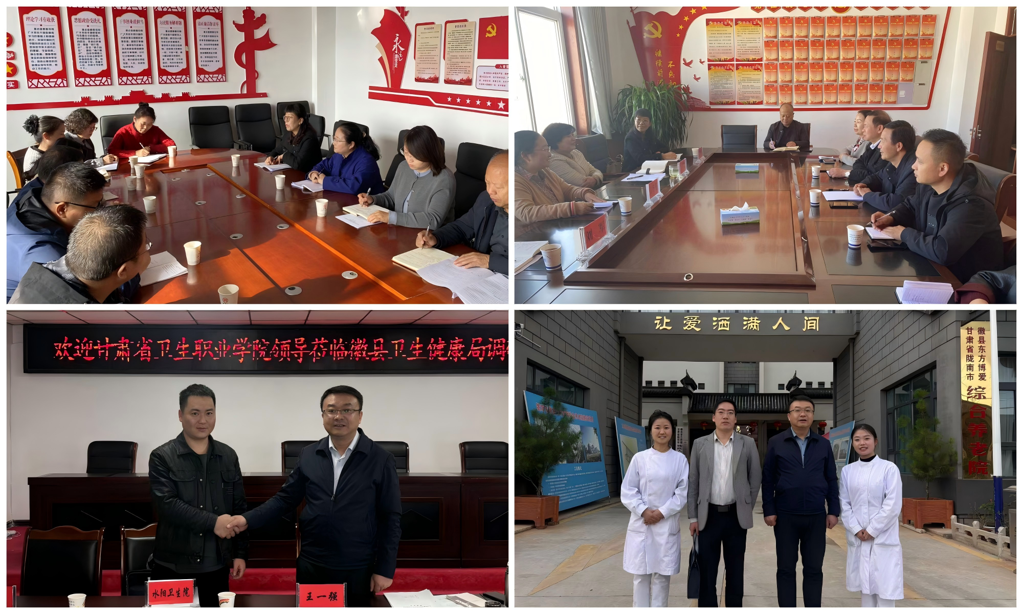 為深入了解基層衛(wèi)生服務(wù)人才需求,進(jìn)一步優(yōu)化學(xué)校人才培養(yǎng)模式,有效服務(wù)區(qū)域養(yǎng)老及鄉(xiāng)村振興戰(zhàn)略,推進(jìn)學(xué)生實(shí)習(xí)就業(yè)一體化工作,會議結(jié)束后,11月2日- 5日,王建成校長帶隊(duì)赴隴南市開展調(diào)研,學(xué)校教務(wù)處處長呂香茹、護(hù)理學(xué)院黨總支書記馬彥軍、護(hù)理學(xué)院院長王一強(qiáng)、中醫(yī)學(xué)院院長王彩霞、學(xué)校辦公室副主任李莉萍陪同調(diào)研。