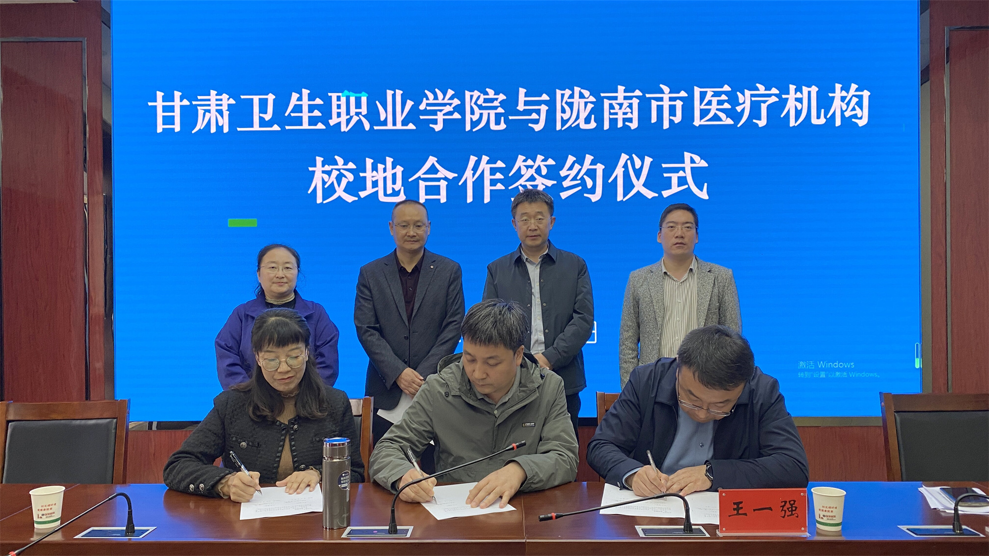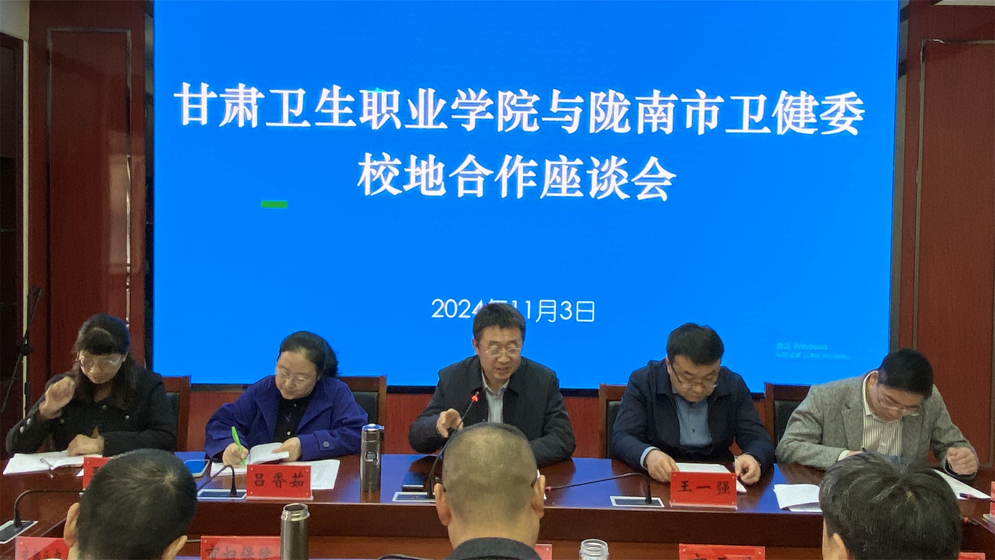 王建成一行在隴南市衛(wèi)健委與武都區(qū)各醫(yī)院及基層醫(yī)療機(jī)構(gòu)舉行座談(隴南市衛(wèi)健委黨組成員、副主任王應(yīng)虎,隴南市第一人民醫(yī)院黨委委員宋凱,隴南市婦幼保健院副院長焦文學(xué)、隴南市衛(wèi)生學(xué)校黨委書記管宏出席座談會),認(rèn)真聽取了各醫(yī)院及基層醫(yī)療機(jī)構(gòu)對于醫(yī)藥衛(wèi)生人才需求、人才培養(yǎng)等方面意見和建議。介紹了近兩年改革發(fā)展情況,在人才培養(yǎng)方面獨(dú)特的優(yōu)勢,從學(xué)生假期見習(xí)、教學(xué)資源共享、村醫(yī)考核培訓(xùn)、護(hù)理員資格考核、實(shí)習(xí)就業(yè)基地共建五個方面表達(dá)了推進(jìn)校地合作、校企合作,實(shí)現(xiàn)優(yōu)勢互補(bǔ),互惠雙贏的良好愿望,經(jīng)友好溝通,雙方?jīng)Q定在現(xiàn)有良好合作基礎(chǔ)上,進(jìn)一步加大合作力度,拓展合作領(lǐng)域,雙方代表簽訂戰(zhàn)略合作框架協(xié)議,標(biāo)志著學(xué)校與校地、校企合作邁入了一個新階段。