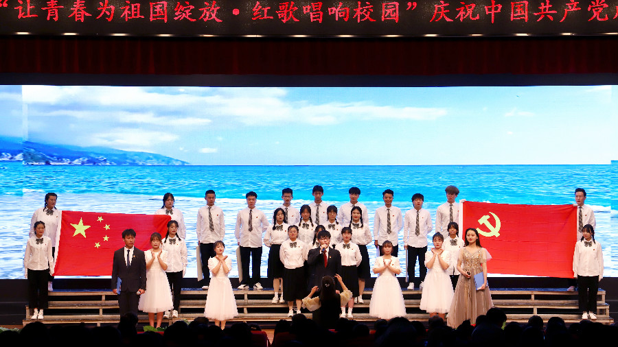 經(jīng)過各學(xué)院初賽選拔推薦,校團(tuán)委審核確定了15個節(jié)目參加比賽。本次活動以習(xí)近平新時代中國特色社會主義思想為指導(dǎo),全面貫徹黨的十九大和十九屆二中、三中、四中、五中全會精神, 圍繞建黨100周年這條主線,強化黨史學(xué)習(xí)教育,全面展現(xiàn)了中國共產(chǎn)黨帶領(lǐng)全國各族人民同心同德、砥礪前行所取得的輝煌成就;大力弘揚了以愛國主義為核心的偉大民族精神,唱響時代主旋律,激發(fā)愛黨、愛國熱情,展示了全校師生干事創(chuàng)業(yè)、奮發(fā)向上的精神風(fēng)貌;大力營造了萬眾一心、共同追夢的濃厚氛圍。活動中,全體團(tuán)委干部合唱了歌曲《不忘初心》,在場全體人員起立合唱了《沒有共產(chǎn)黨就沒有新中國》,黨旗和國旗隨著歌聲在全場搖動。
