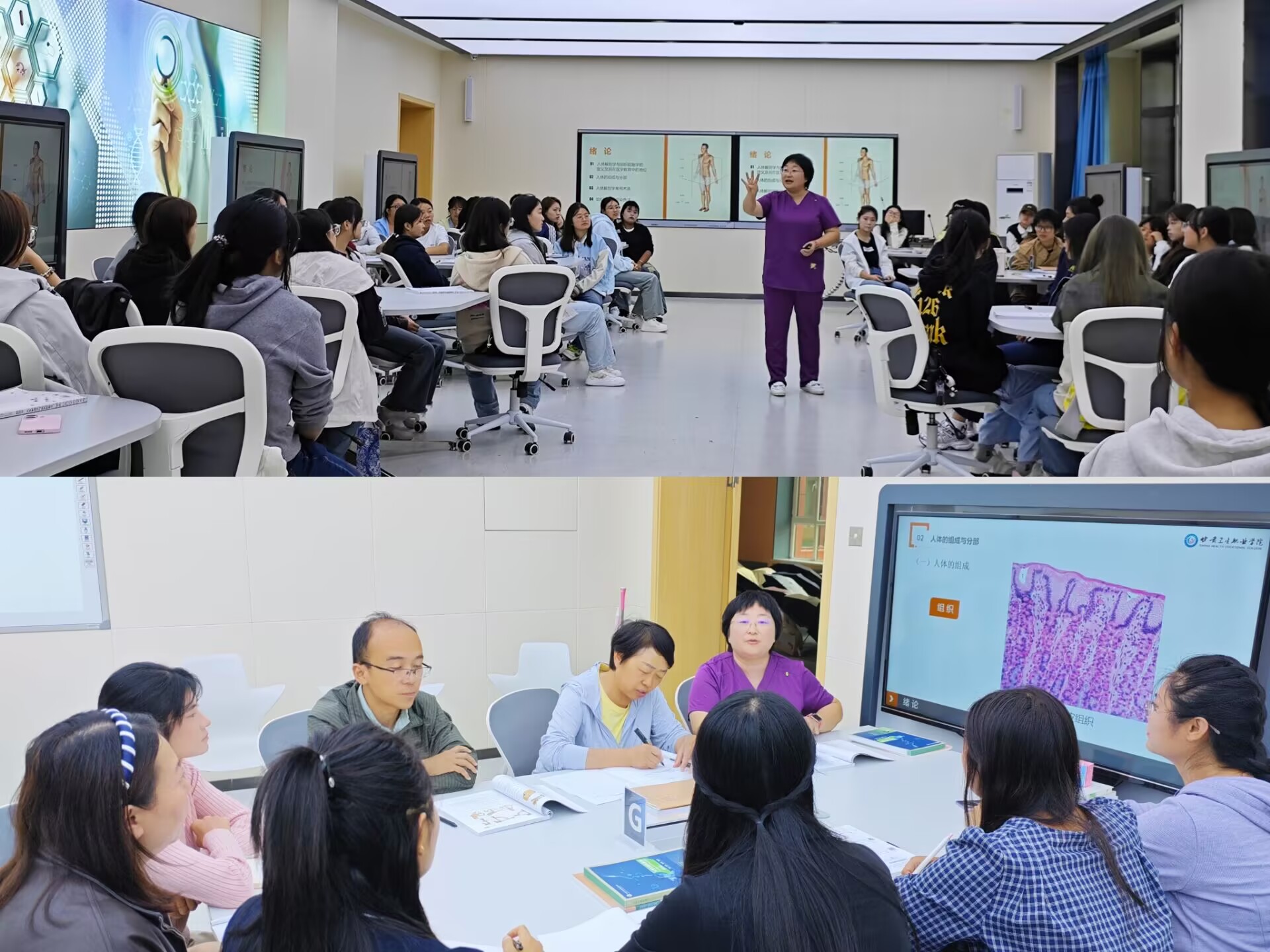 本次觀摩以助產(chǎn)專業(yè)《人體解剖學(xué)與組織胚胎學(xué)》“開學(xué)第一課”為示范,以“守護(hù)生命的通道,科學(xué)與人文的雙重旅程”為主題,由呂香茹副教授主講。課堂伊始,呂老師以“提起‘助產(chǎn)士’,你首先想到的是什么?”這一問題開篇,迅速拉近與學(xué)生的距離,隨后自然過渡到學(xué)科重要性的闡述,讓學(xué)生明白《人體解剖學(xué)與組織胚胎學(xué)》是鑄就助產(chǎn)專業(yè)硬核技術(shù)的基石。授課過程中,既從“科學(xué)精準(zhǔn)性”解析“生命通道”結(jié)構(gòu),強(qiáng)調(diào)專業(yè)嚴(yán)謹(jǐn)性;又結(jié)合胚胎發(fā)育知識傳遞“人文關(guān)懷”,強(qiáng)化學(xué)生職業(yè)擔(dān)當(dāng)。同時緊扣甘肅基層醫(yī)療實際,升華工匠精神與人文情懷,實現(xiàn)知識傳授與價值引領(lǐng)同頻。