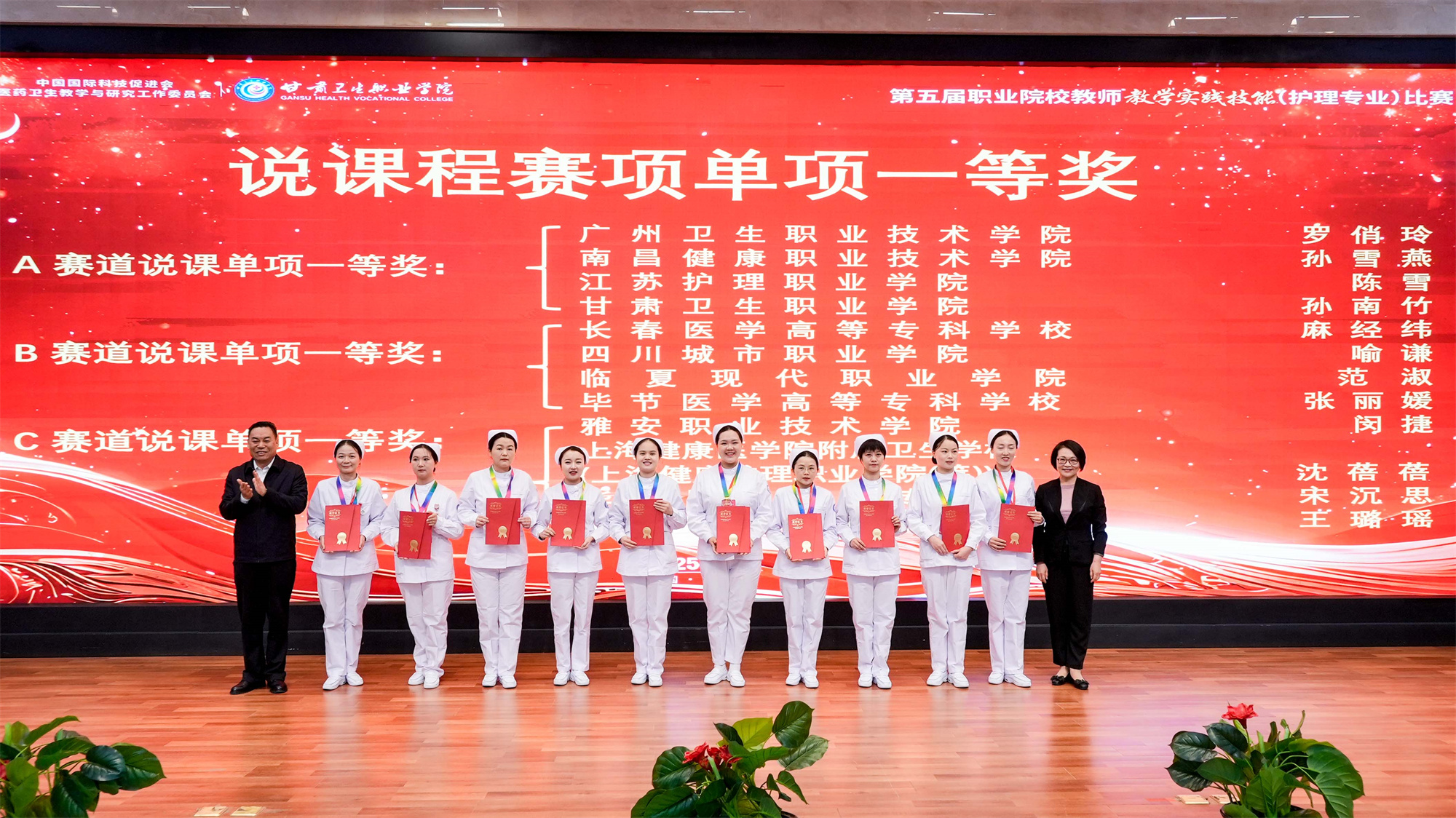 北京協(xié)和醫(yī)學(xué)院護(hù)理學(xué)院原院長、中國國際科技促進(jìn)會醫(yī)藥衛(wèi)生教學(xué)與研究工作委員會主任、賽項執(zhí)委會主任劉華平,中國國際科技促進(jìn)會醫(yī)藥衛(wèi)生教學(xué)與研究工作委員會執(zhí)行主任、賽項執(zhí)委會執(zhí)行主任王文海,中國職業(yè)技術(shù)教育學(xué)會醫(yī)藥衛(wèi)生教育專業(yè)委員會秘書長、賽項監(jiān)督仲裁長高璀鄉(xiāng),天津中醫(yī)藥大學(xué)附屬第一醫(yī)院護(hù)理部主任、賽項裁判長董麗,復(fù)旦大學(xué)附屬上海市第五人民醫(yī)院護(hù)理部主任、賽項專家組組長顧艷葒,上海健康醫(yī)學(xué)院教授、賽項專家組副組長周進(jìn)祝,中國國際科技促進(jìn)會醫(yī)藥衛(wèi)生教學(xué)與研究工作委員會執(zhí)行秘書長、賽項秘書長兼專家組專家牟琳,甘肅衛(wèi)生職業(yè)學(xué)院黨委書記包磊,甘肅衛(wèi)生職業(yè)學(xué)院黨委副書記、校長王建成等領(lǐng)導(dǎo)和專家出席閉賽式。