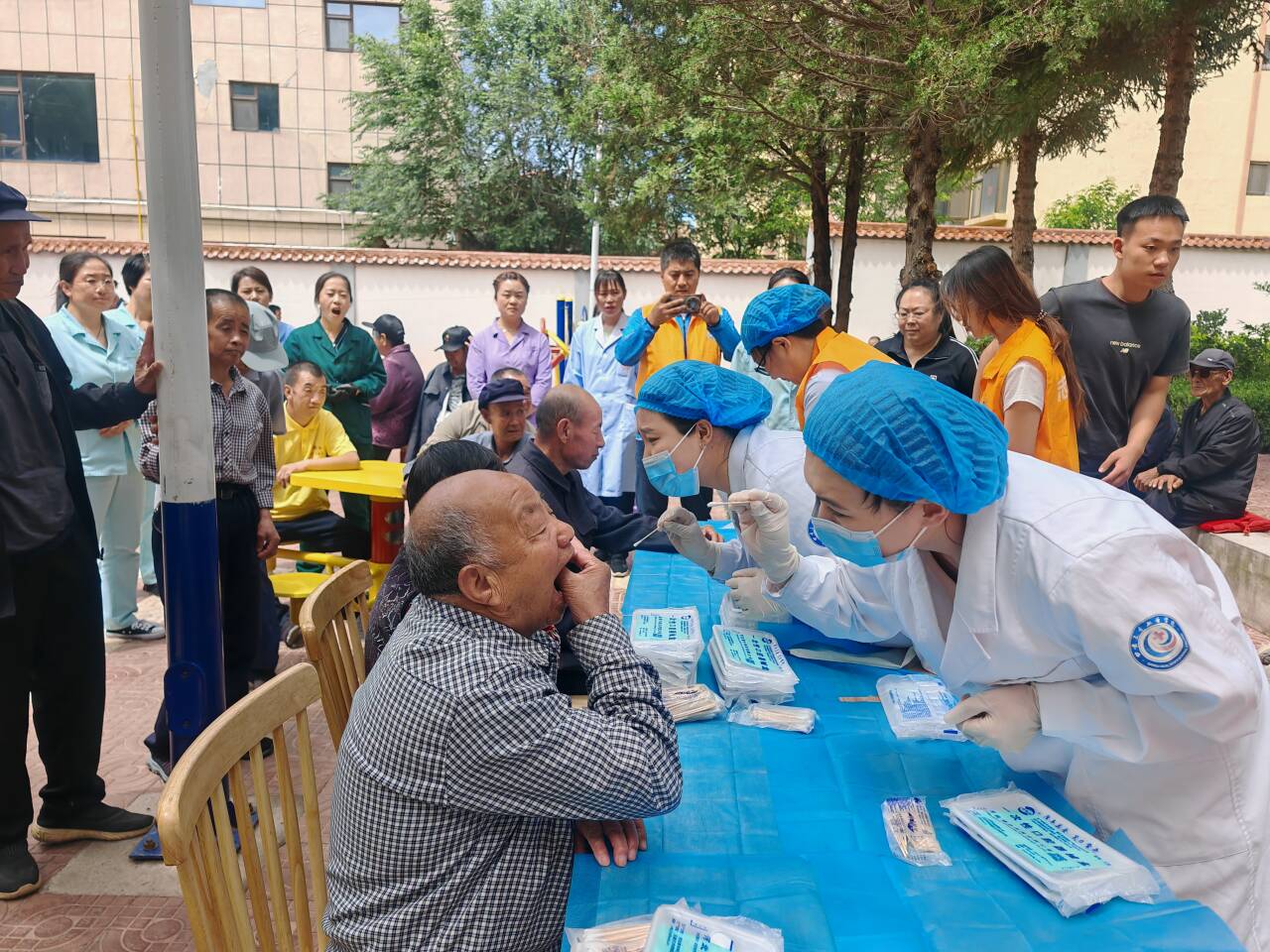 上午7時30分,實踐隊在學院黨總支副書記帶領(lǐng)下啟程,歷經(jīng)3小時車程抵達會寧縣福利院。福利院負責人代表院方對師生到來表示熱烈歡迎。實踐隊首先舉行愛心捐贈儀式,學校工會捐贈的米、面、油等生活物資與口腔醫(yī)學院購置的牙膏、牙刷、毛巾等口腔護理套裝整齊排列,傳遞著對老人們的貼心關(guān)懷。隨后,志愿服務(wù)正式展開:醫(yī)護小組搭起簡易診療臺,為30余名老人檢查口腔并測量血壓,針對牙周病防治、義齒清潔、高血壓等問題提供“一對一”指導(dǎo);“推普+健康”宣教組則通過情景演示,幫助現(xiàn)場工作人員和老人掌握規(guī)范用語及慢性病管理知識,現(xiàn)場笑聲與掌聲不斷。