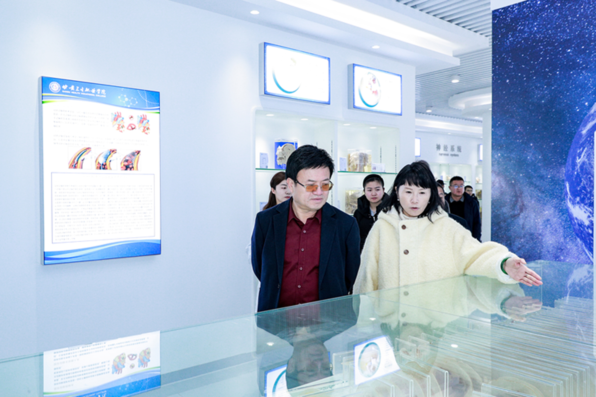 交流活動(dòng)分兩組開展,副校長(zhǎng)高博帶隊(duì)參觀了學(xué)校心理健康教育中心、就業(yè)創(chuàng)新實(shí)訓(xùn)中心、馬克思主義學(xué)院紅色教育基地、懷仁館職工之家及學(xué)校食堂;副校長(zhǎng)張軍榮帶隊(duì)參觀了中醫(yī)學(xué)院、藥學(xué)院、護(hù)理學(xué)院、口腔醫(yī)學(xué)院、醫(yī)學(xué)技術(shù)與工程學(xué)院實(shí)訓(xùn)中心及基礎(chǔ)醫(yī)學(xué)院生命科學(xué)館。