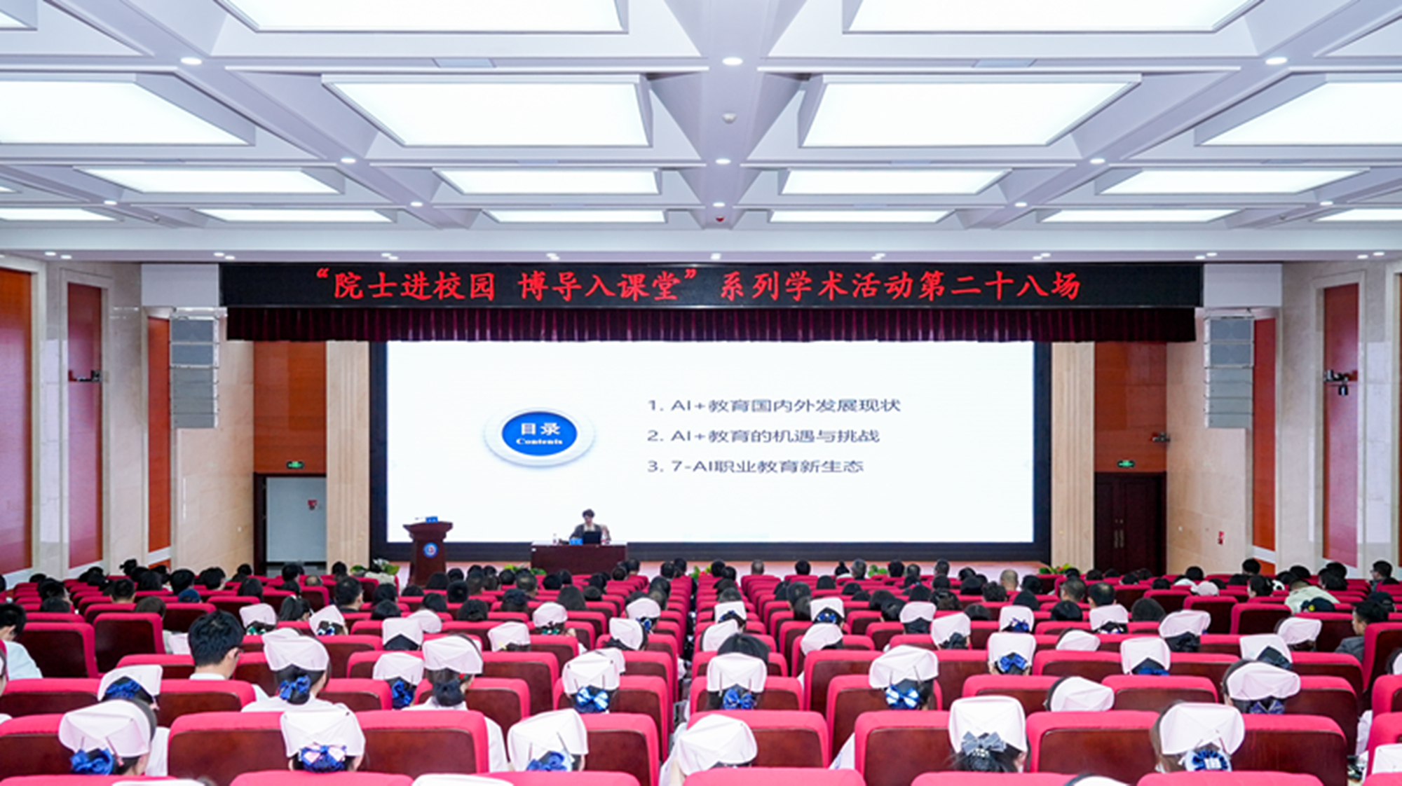 郭炯教授從國際視角切入,剖析了各國對(duì)人工智能在教育領(lǐng)域應(yīng)用態(tài)度的演變,介紹了國內(nèi)外眾多職業(yè)院校在人工智能與專業(yè)融合方面的創(chuàng)新路徑,探討了“AI+職業(yè)教育”所面臨的機(jī)遇與挑戰(zhàn)。郭教授基于其提出的“7-AI職業(yè)教育新生態(tài)”理念,結(jié)合我校護(hù)理、臨床醫(yī)學(xué)等專業(yè)的實(shí)際情況,提出了涵蓋AI+專業(yè)、課程、資源、教學(xué)、實(shí)訓(xùn)、平臺(tái)、治理等多個(gè)維度的具體實(shí)踐建議,為我校在人工智能與職業(yè)教育融合創(chuàng)新發(fā)展方面提供了系統(tǒng)性的工作框架和清晰的思路。