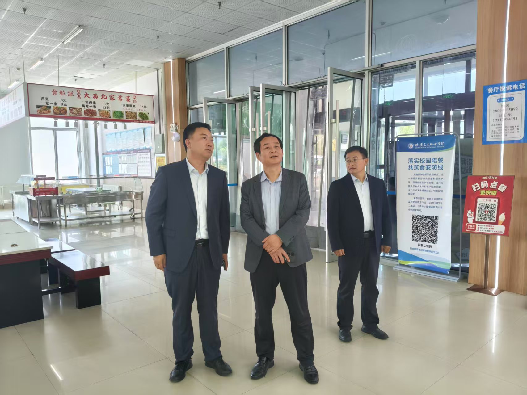 李春一行先后來到中醫(yī)學(xué)院、護理學(xué)院、藥學(xué)院,實地參觀了各學(xué)院的實驗實訓(xùn)室,深入了解了學(xué)校在人才培養(yǎng)、產(chǎn)教融合、校企合作等方面的情況。并專程深入學(xué)生食堂,對食品安全工作情況進行了解,提出了意見建議。對學(xué)校建設(shè)發(fā)展取得的成效和守護師生舌尖上的安全工作給予了充分肯定。他強調(diào),甘肅衛(wèi)生職業(yè)學(xué)院作為甘肅省唯一一所醫(yī)藥衛(wèi)生類高職院校,在省內(nèi)辦學(xué)聲譽良好,在西北乃至全國具有一定的影響力。勉勵在場的工作人員要站在職業(yè)教育發(fā)展的最前沿,緊緊圍繞立德樹人根本任務(wù),奮進擔(dān)當(dāng),著力提升學(xué)校人才競爭力和社會影響力,服務(wù)學(xué)校向更高目標(biāo)發(fā)展。