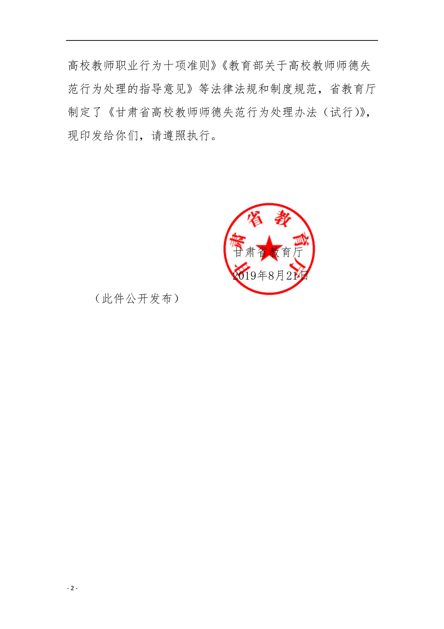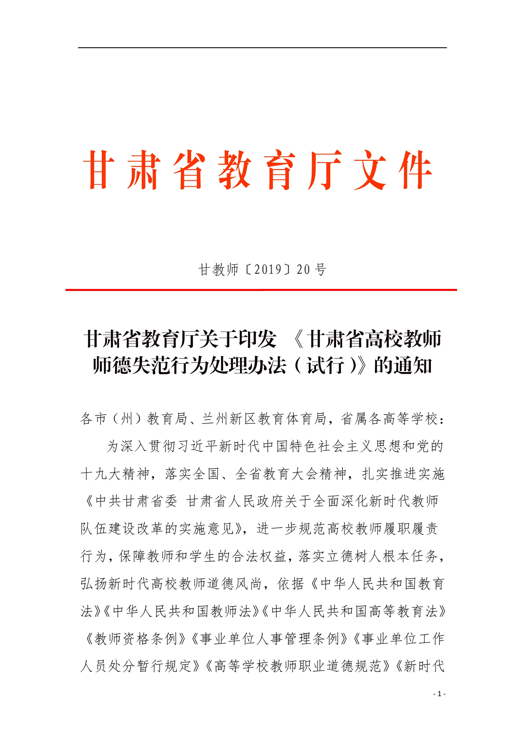 甘肅省教育廳關(guān)于印發(fā) 《甘肅省高校教師師德失范行為處理辦法(試行)》的通知