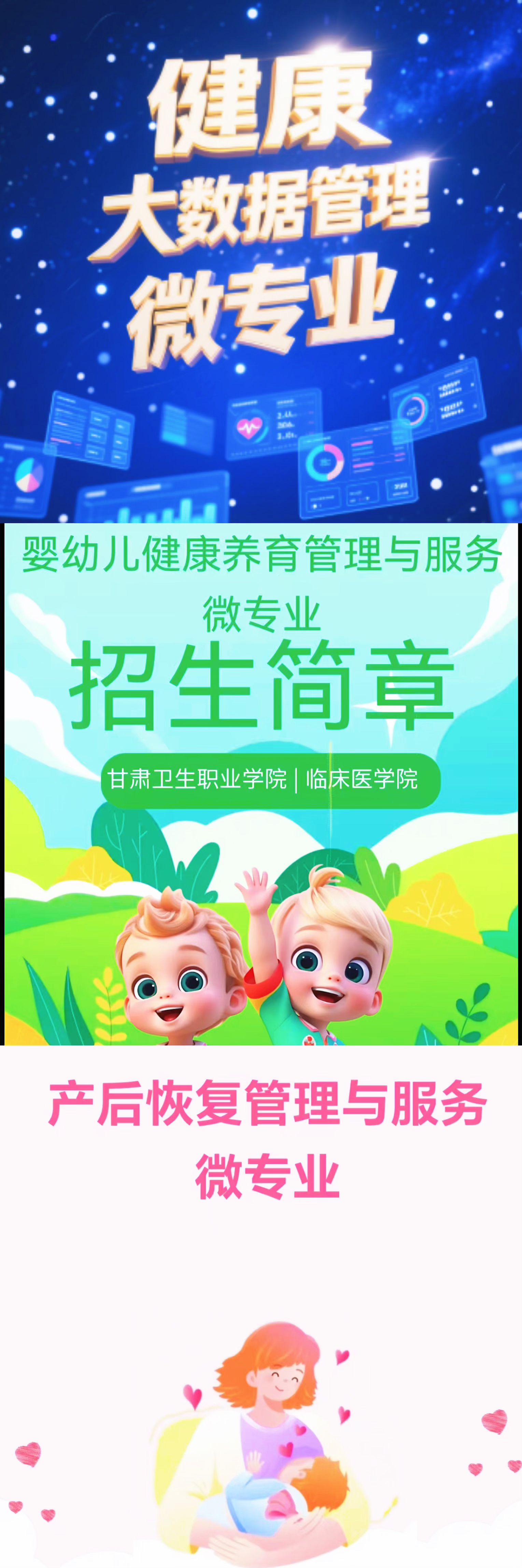 每個微專業(yè)均設置5門核心課程,采用線上與線下相結(jié)合的教學模式,注重理論與實踐融合。其中,健康大數(shù)據(jù)管理專業(yè)聚焦醫(yī)學與信息技術交叉,著力提升學生在醫(yī)療數(shù)據(jù)采集、分析和管理方面的能力;嬰幼兒健康養(yǎng)育管理與服務專業(yè)立足社會對嬰幼兒照護的現(xiàn)實需求,培養(yǎng)具備系統(tǒng)知識與實操能力的健康管理人才;產(chǎn)后恢復管理與服務專業(yè)則面向女性健康領域,聚焦產(chǎn)后康復服務技能,滿足產(chǎn)業(yè)發(fā)展對專業(yè)人才的迫切需求。