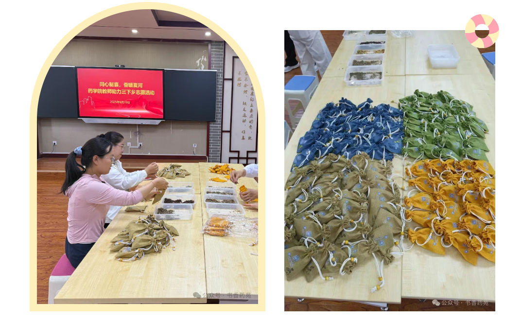 藥學(xué)院在岐黃樓中藥調(diào)劑室舉辦 “同心制囊,香暖夏河” 香袋制作志愿活動(dòng),教職工以親手制作的香囊為載體,為學(xué)校“三下鄉(xiāng)” 文化傳播活動(dòng)增添色彩。
