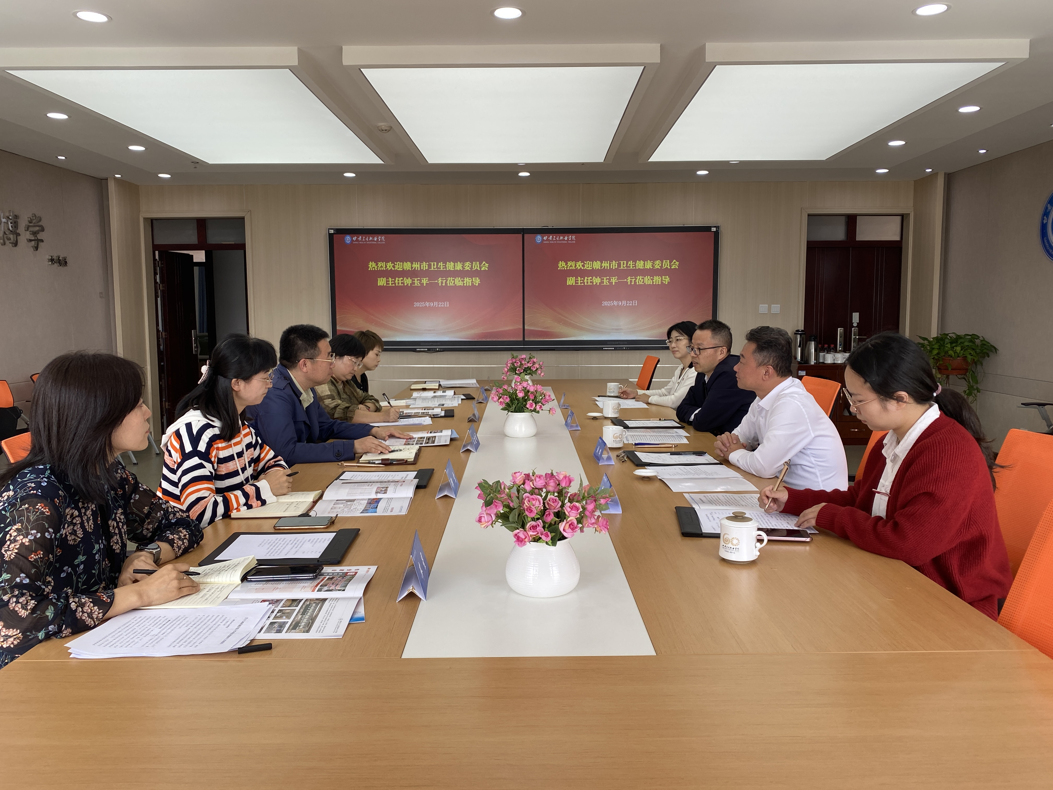 9月22日上午,贛州市衛(wèi)生健康委員會(huì)黨組成員、副主任鐘玉平,贛南衛(wèi)生健康職業(yè)學(xué)院黨委副書記、院長劉輝與該校相關(guān)部門負(fù)責(zé)人、教師一行四人蒞臨我校開展交流訪問活動(dòng)。學(xué)校黨委副書記、院長王建成及相關(guān)部門負(fù)責(zé)人陪同參觀并參與座談。