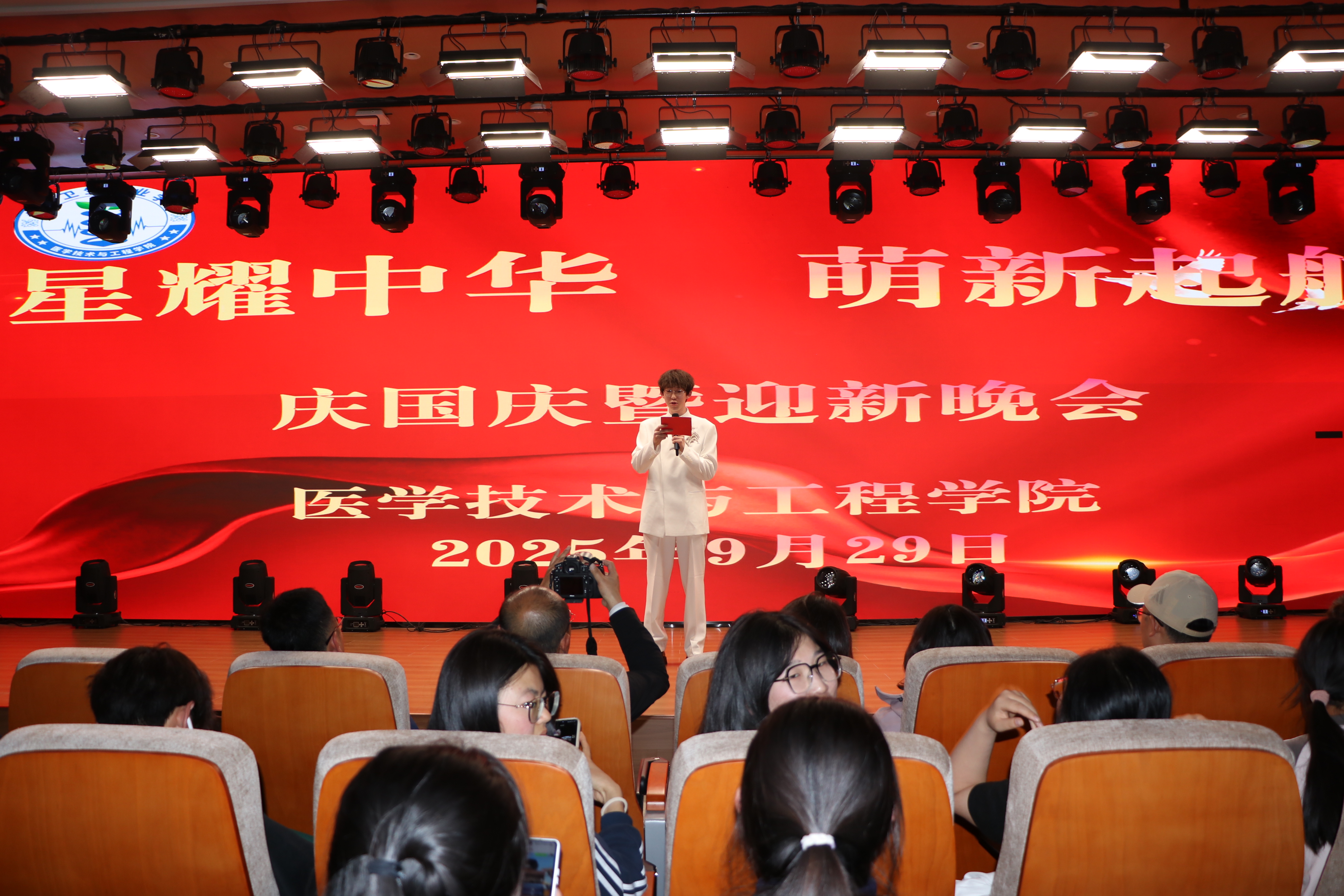 為禮贊祖國(guó)76周年華誕,迎接2025級(jí)新生開(kāi)啟醫(yī)學(xué)筑夢(mèng)新征程,醫(yī)學(xué)技術(shù)與工程學(xué)院于9月29日晚舉辦了“星耀中華 萌新起航”慶國(guó)慶暨迎新晚會(huì)。學(xué)院全體教師與2025級(jí)新生共同觀看了演出。