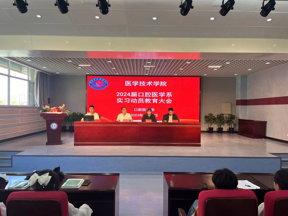 為進一步做好學院2023-2024實習工作,引導學生做好實習前的各項準備,推進實習工作的順利進行,6月14日-16日,醫(yī)學技術學院在臨床醫(yī)學系一樓學術報告廳分別舉行了“口腔醫(yī)學、口腔醫(yī)學技術、醫(yī)學影像技術、醫(yī)學檢驗技術專業(yè)實習生實習動員教育大會”,學院領導、各專業(yè)教師、實習班級輔導員(班主任)、全體實習生參加了會議。