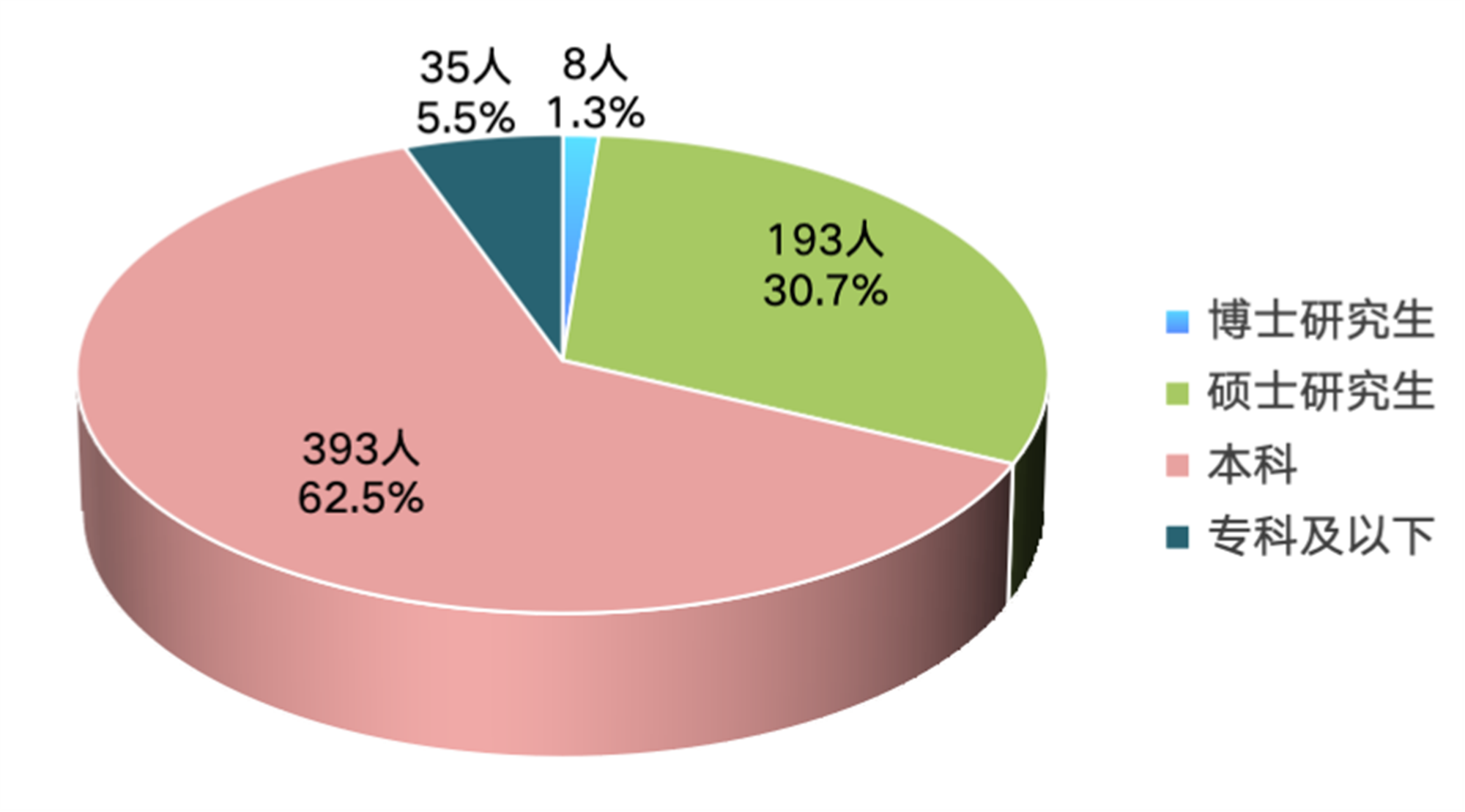 學(xué)校現(xiàn)有教職工629人,其中高級職稱以上教師177人,中級職稱教師163人,初級職稱教師137人,博士研究生8人,碩士研究生193人,本科393人。
