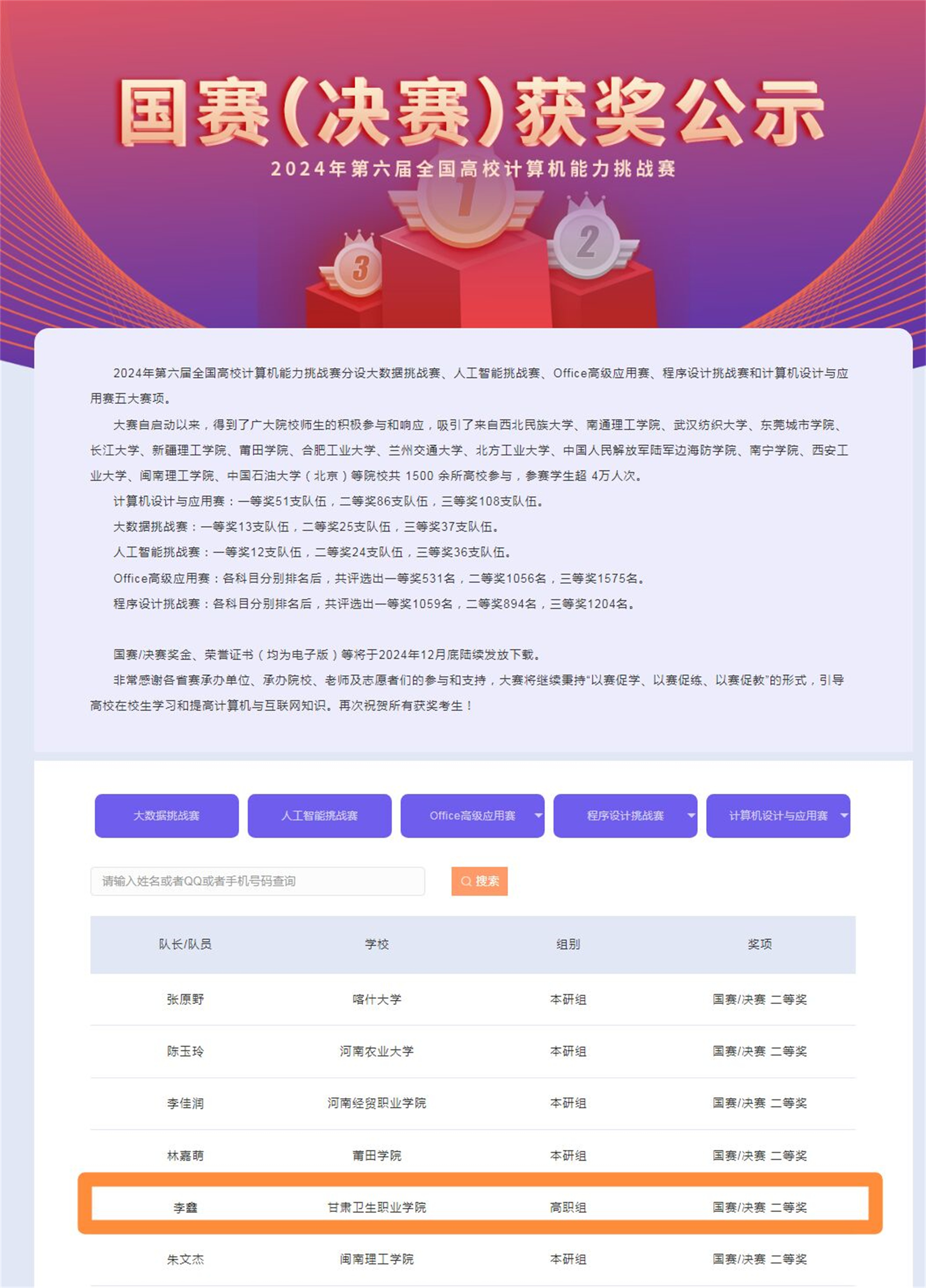 12月11日,第六屆全國(guó)高校計(jì)算機(jī)能力挑戰(zhàn)賽office高級(jí)應(yīng)用賽全國(guó)總決賽圓滿落幕,我校選手李鑫、何星宇、李致昊分獲Word科目和PowerPoint科目的全國(guó)二等獎(jiǎng)。