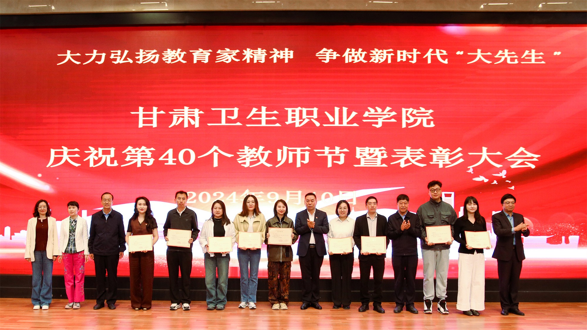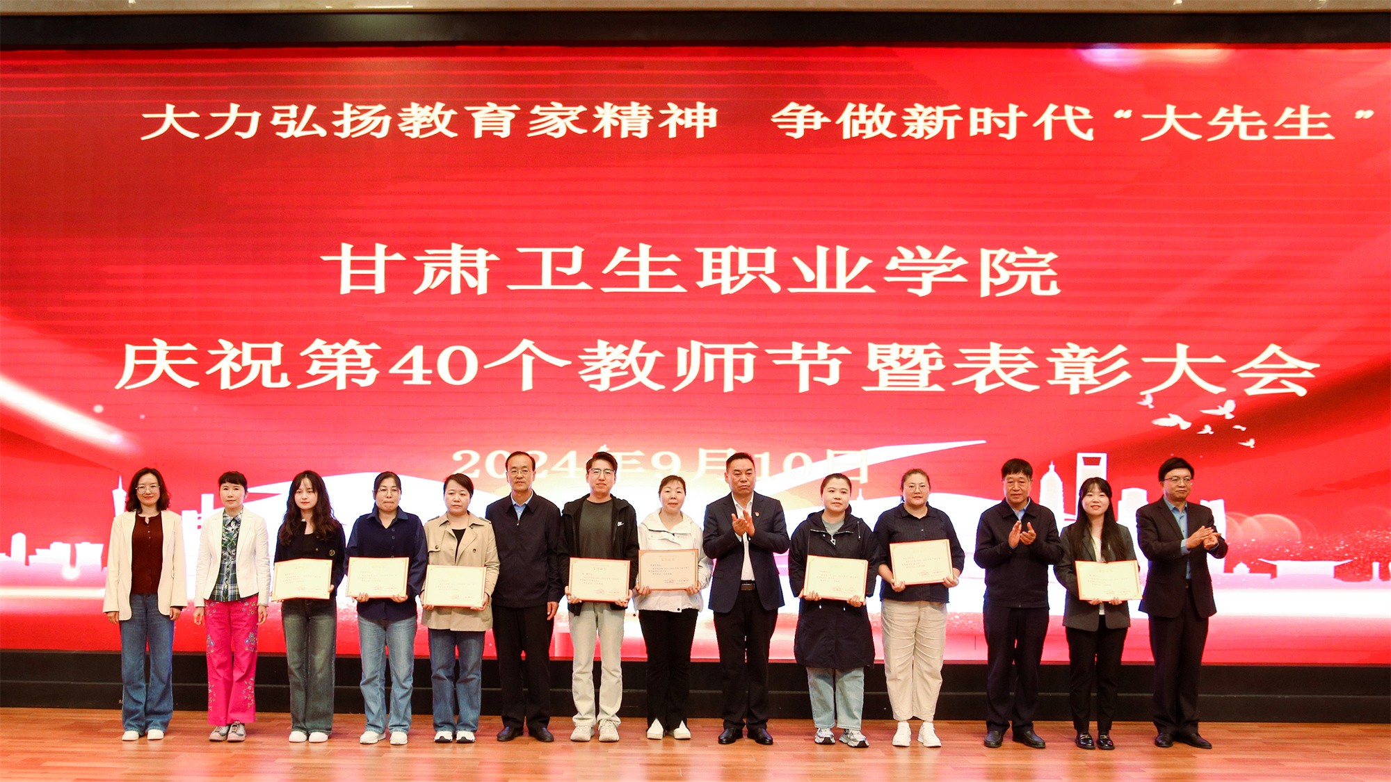 慶祝大會(huì)在熱烈的掌聲中圓滿結(jié)束,全體教師度過(guò)了一個(gè)富有成就感、榮譽(yù)感、幸福感的節(jié)日。在校黨委的正確領(lǐng)導(dǎo)下,全校師生員工將團(tuán)結(jié)一心,凝心聚力,永葆生機(jī),接續(xù)奮斗,努力為建設(shè)英姿勃發(fā)的、富有特色的甘肅衛(wèi)生職業(yè)學(xué)院而努力奮斗。