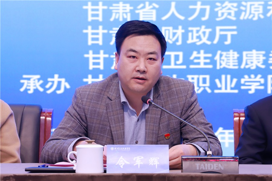 4月13日下午,2021年全省職業(yè)院校學(xué)生技能大賽(醫(yī)藥衛(wèi)生類)甘肅衛(wèi)生職業(yè)學(xué)院賽點(diǎn)開幕式在學(xué)校1號(hào)教學(xué)樓報(bào)告廳成功舉辦。省教育廳職業(yè)教育與成人教育處副處長(zhǎng)令軍輝,蘭州新區(qū)衛(wèi)生健康委員會(huì)主任熊云、蘭州新區(qū)教育局局長(zhǎng)曾俊萍、國(guó)賽護(hù)理賽項(xiàng)副裁判長(zhǎng)季誠(chéng)、國(guó)賽中藥傳統(tǒng)技能賽項(xiàng)裁判楊扶德、甘肅省護(hù)理學(xué)會(huì)理事長(zhǎng)齊海燕、職教園區(qū)服務(wù)保障中心學(xué)生服務(wù)部部長(zhǎng)邵建軍、西岔園區(qū)管委會(huì)副主任郭明軍、賽點(diǎn)仲裁長(zhǎng)劉旭、甘肅衛(wèi)生職業(yè)學(xué)院黨委書記姜德民出席儀式。本次比賽裁判,各參賽院校領(lǐng)導(dǎo)、領(lǐng)隊(duì)、指導(dǎo)教師、選手及我校部分師生代表參加儀式。儀式由賽點(diǎn)執(zhí)委會(huì)副主任黃剛主持。