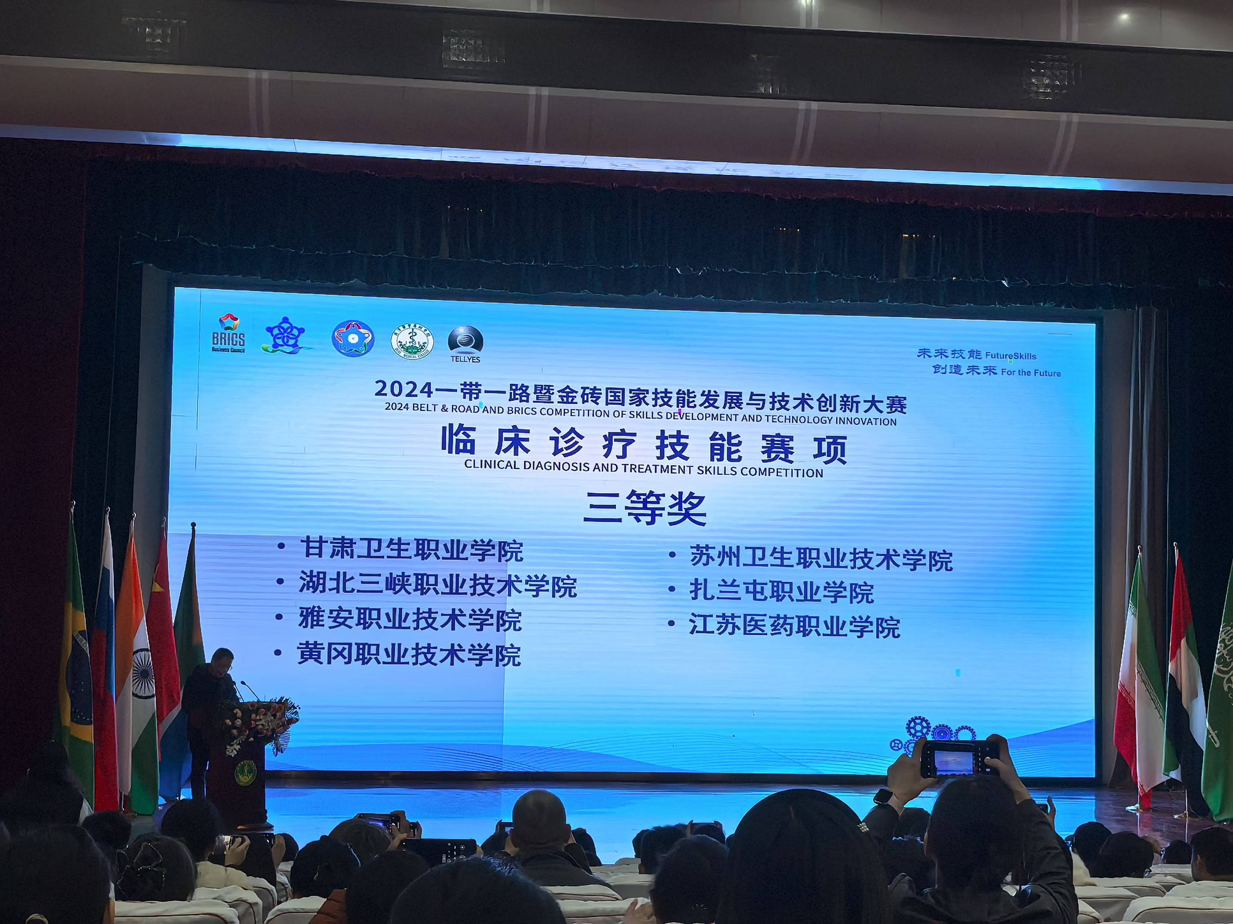 月15日至17日,"2024一帶一路暨金磚國家技能發(fā)展與技術(shù)創(chuàng)新大賽"臨床診療技能賽項在菏澤醫(yī)學(xué)高等專科學(xué)校舉辦,來自全國45所高職高專院校的代表隊同臺競技,競爭激烈。我校臨床醫(yī)學(xué)院張芳妮、馬凌雯兩位學(xué)生,憑借扎實的專業(yè)知識、臨床診療技能和無間的團(tuán)隊協(xié)作能力榮獲三等獎。