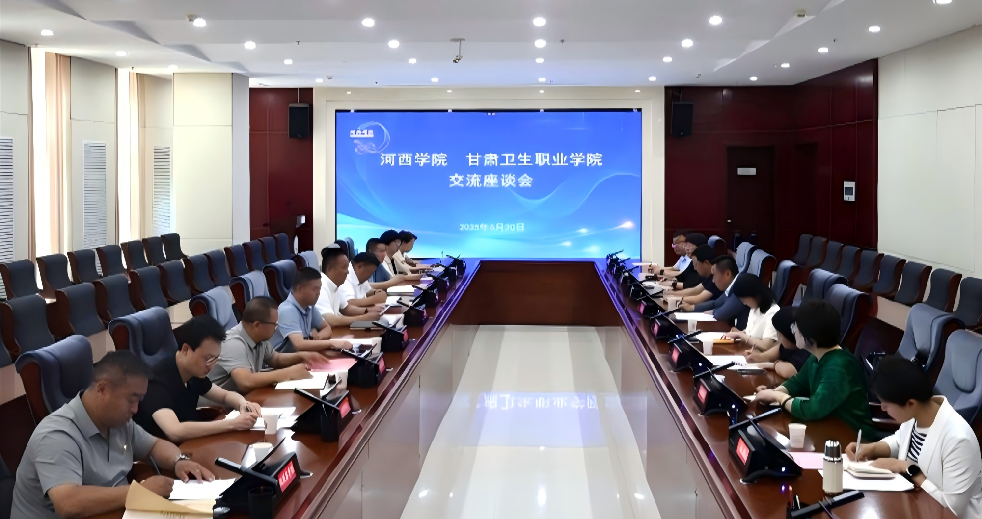 6月19日—20日,學(xué)校黨委書記包磊、副校長張軍榮帶領(lǐng)學(xué)校辦公室、教務(wù)處、臨床醫(yī)學(xué)院、口腔醫(yī)學(xué)院、護理學(xué)院、教育培訓(xùn)與國際合作中心主要負責人赴河西學(xué)院交流工作。河西學(xué)院黨委書記梁兆光,黨委副書記、校長李廣,黨委常委、副校長趙柱及各部門負責人參加交流活動。