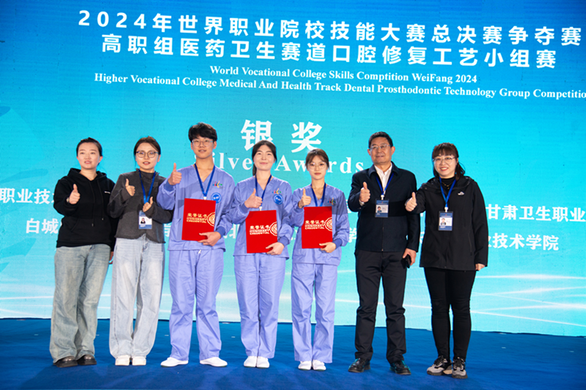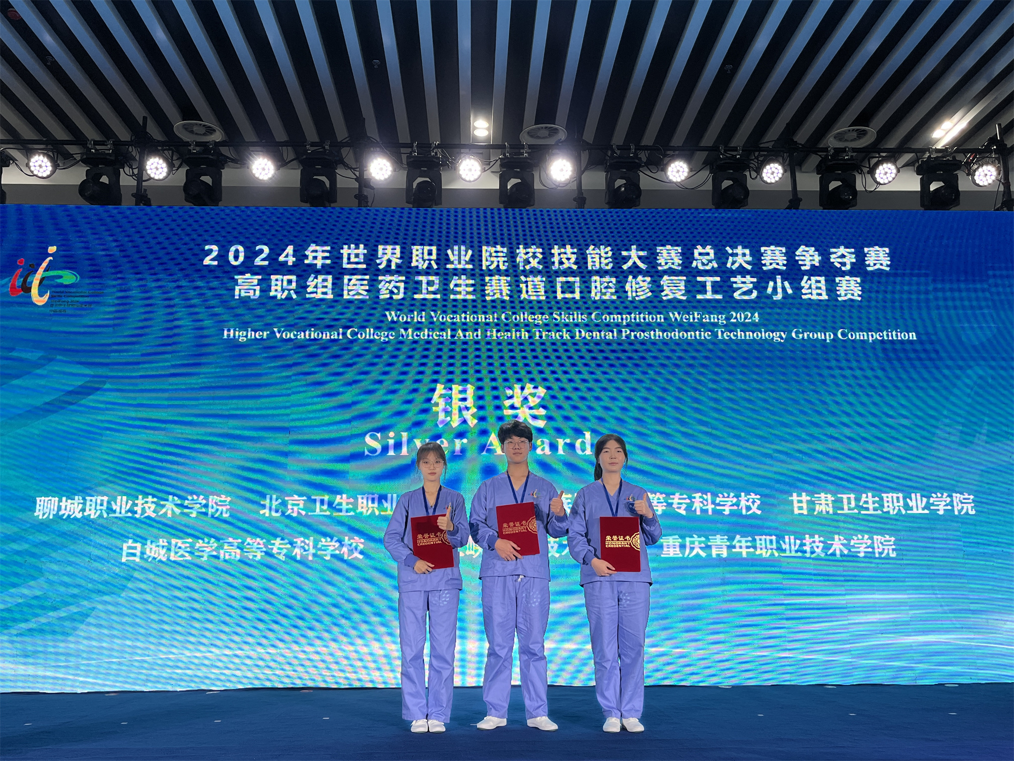 10月29日至30日,2024年世界職業(yè)院校技能大賽總決賽醫(yī)藥衛(wèi)生賽道三(口腔修復工藝賽項)爭奪賽在山東濰坊高鐵北站綜合體成功舉辦。來自全國各地47支優(yōu)秀參賽隊,共171名參賽選手同臺競技。我校參賽選手郭瑩春、劉芳銀、尚天路以平行組第3名總分620的成績榮獲銀獎。