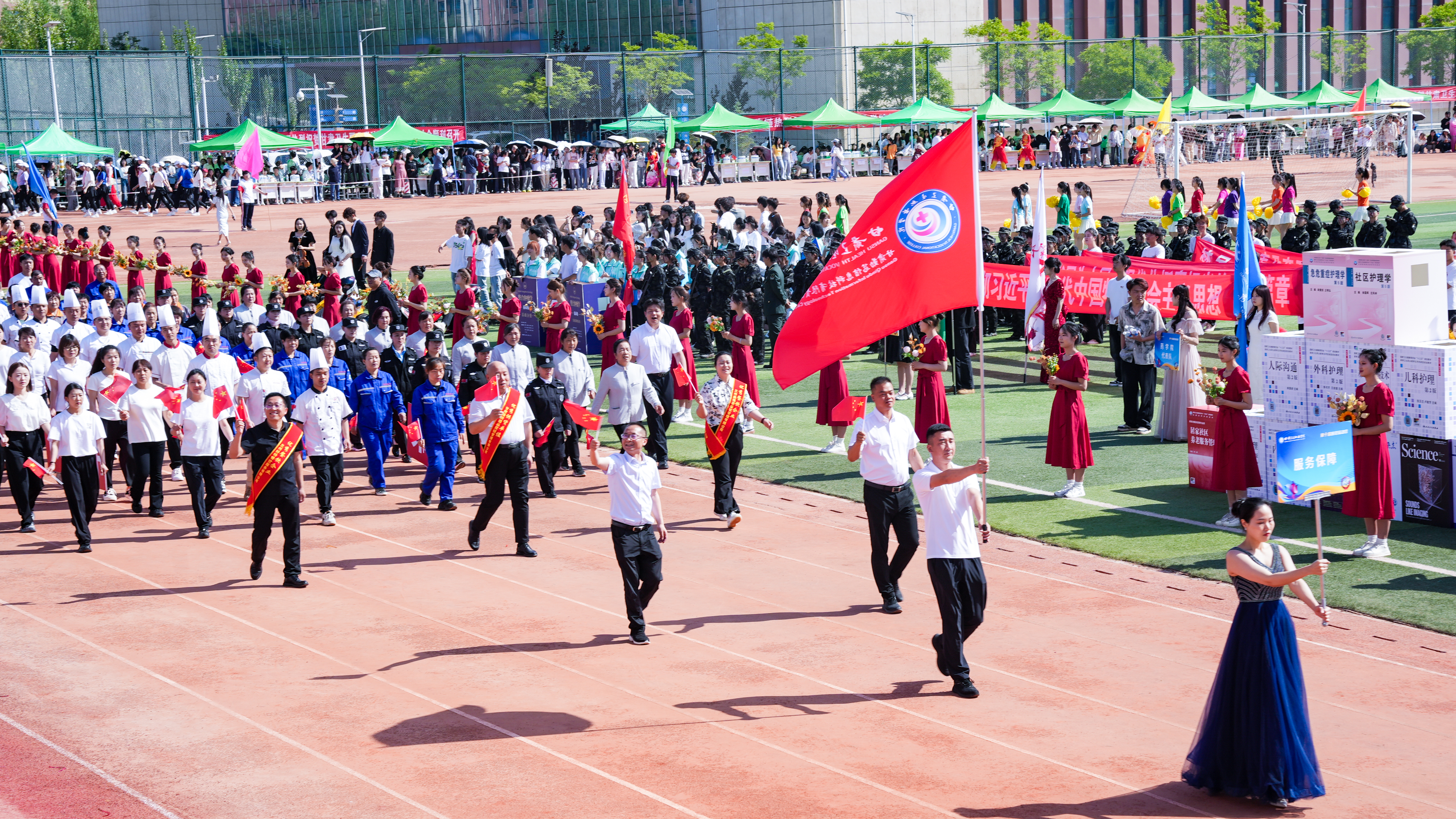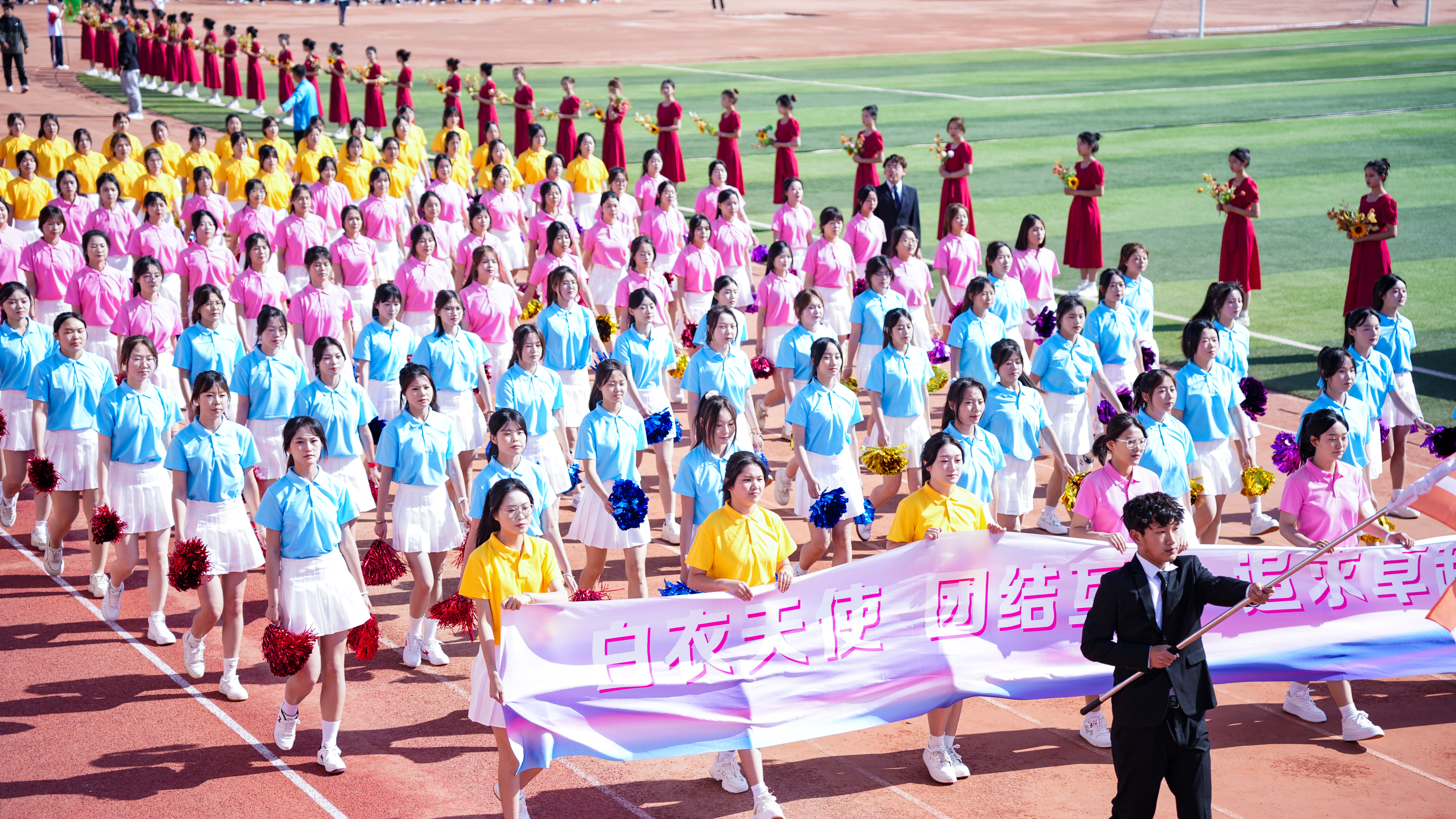 伴隨著激動(dòng)人心的進(jìn)行曲,國旗、校旗、校徽、口號(hào)(文明、健康、團(tuán)結(jié)、奮進(jìn))、彩旗隊(duì)、花束隊(duì)、裁判員代表隊(duì)、各專業(yè)運(yùn)動(dòng)員代表隊(duì)方陣依次入場(chǎng)。各方陣隊(duì)伍步伐矯健、口號(hào)嘹亮,各專業(yè)和學(xué)生社團(tuán)結(jié)合自身特色,精心設(shè)計(jì)了獨(dú)特的過場(chǎng)表演,有的身著專業(yè)服裝展示醫(yī)護(hù)人員的風(fēng)采,有的高舉院訓(xùn)橫幅表達(dá)醫(yī)學(xué)生救死扶傷的鄭重承諾,有的用響亮的口號(hào)傳遞著青春的激情,充分展現(xiàn)了同學(xué)們的意氣風(fēng)發(fā)與創(chuàng)新精神。由食堂廚師、物業(yè)工作者、校園超市員工組成的勤篤公司(服務(wù)保障)方隊(duì)首次亮相運(yùn)動(dòng)會(huì),展現(xiàn)了默默守護(hù)校園的后勤人團(tuán)結(jié)奮進(jìn)的別樣風(fēng)采。