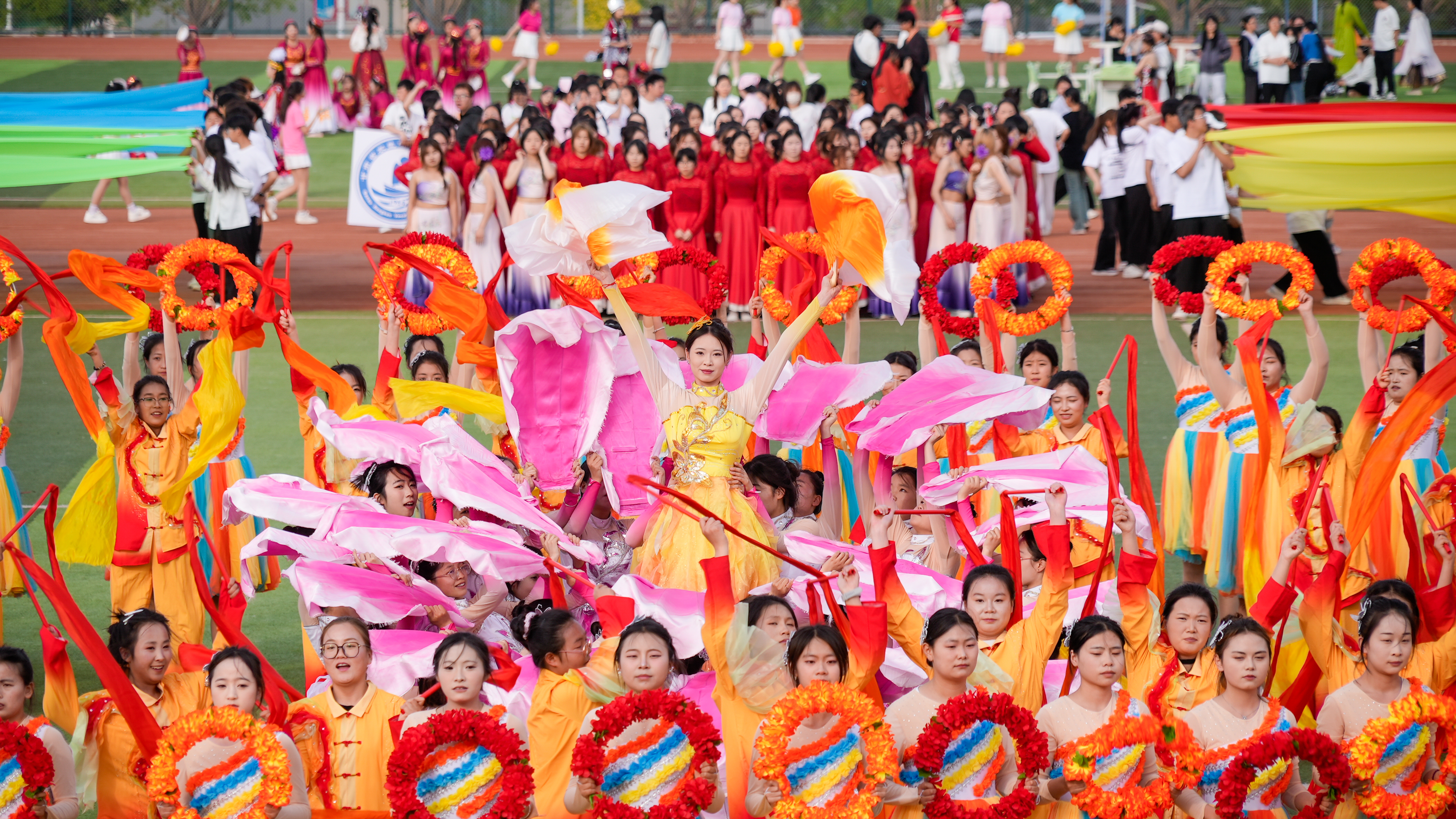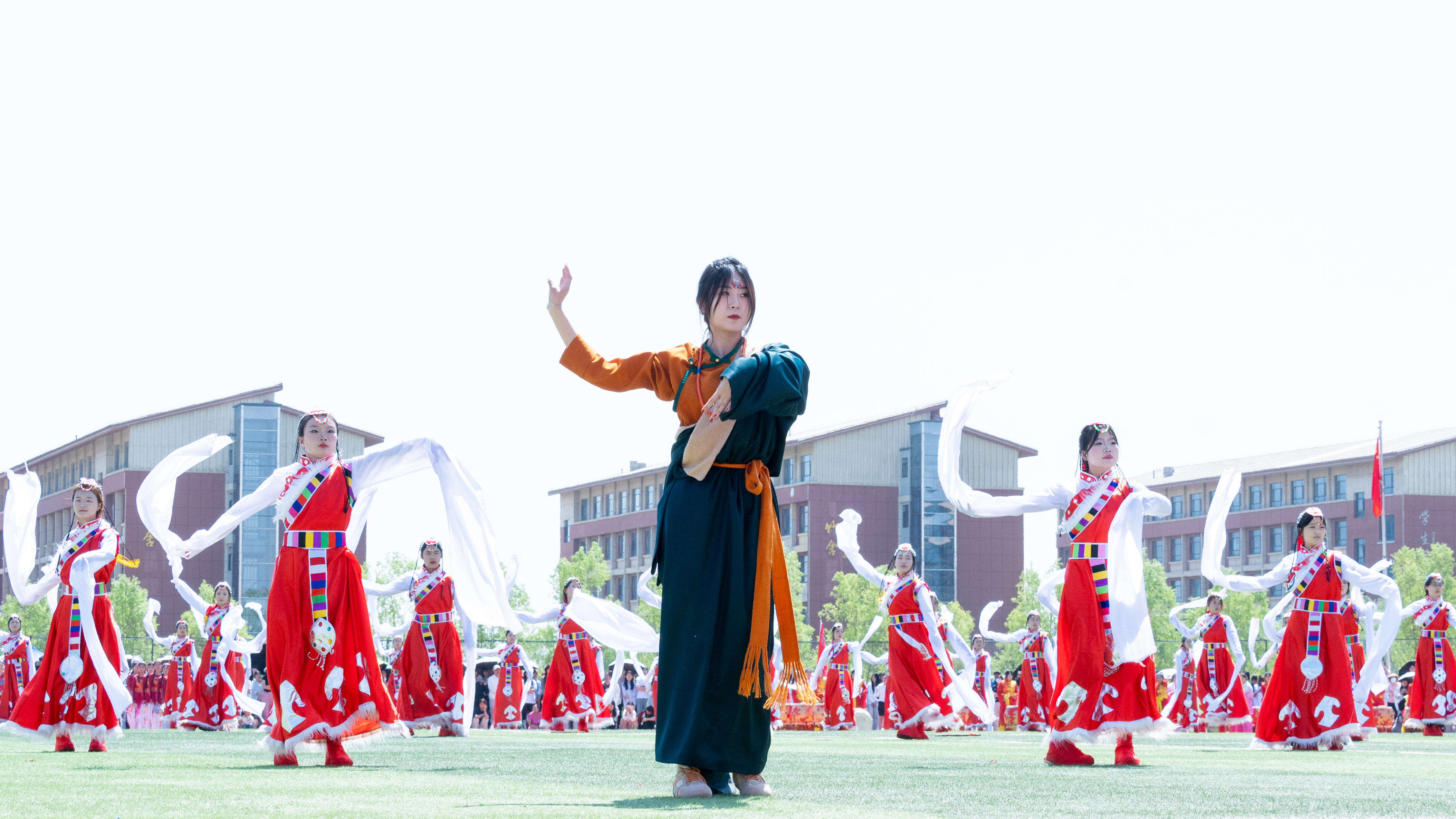 各方隊(duì)退場(chǎng)后,多元的文藝表演將開幕式氣氛推向高潮。各二級(jí)學(xué)院帶來精彩紛呈的節(jié)目表演,以飽滿的精神、優(yōu)美的舞姿展現(xiàn)新時(shí)代衛(wèi)職院學(xué)子精神風(fēng)貌,獻(xiàn)禮每一位銳意進(jìn)取的衛(wèi)職院人。校團(tuán)委精心編排的《石榴花開·籽籽同心》以石榴象征民族團(tuán)結(jié),用肢體語言訴說中華民族多元一體、團(tuán)結(jié)奮進(jìn)的深厚情誼,傳遞“同心共筑中國夢(mèng)”的美好愿景,贏得現(xiàn)場(chǎng)叫好連連。