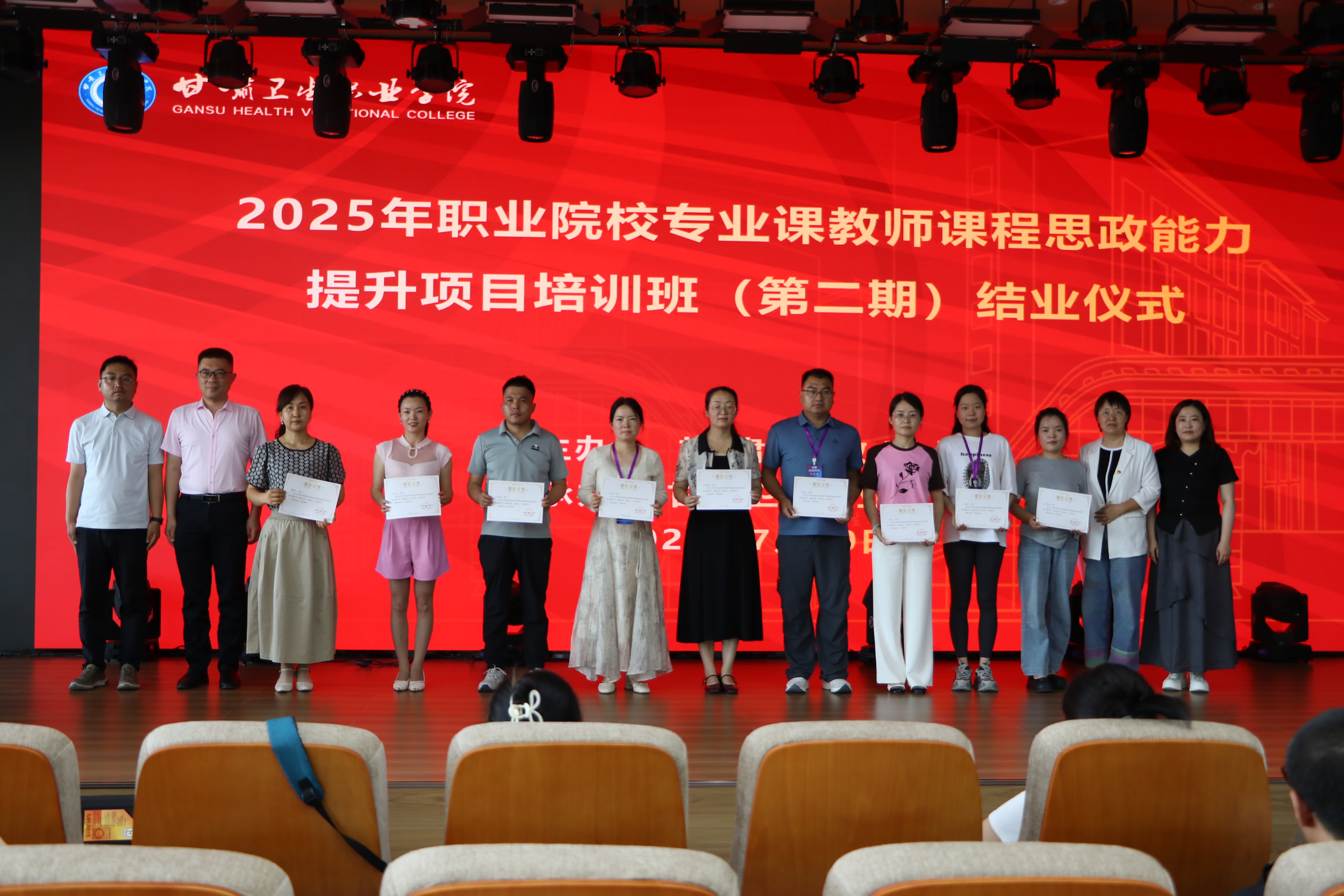 7月10日下午,由甘肅省教育廳主辦、甘肅衛(wèi)生職業(yè)學院承辦的 2025年度甘肅省職業(yè)院校專業(yè)課教師課程思政能力提升項目培訓班(第二期)順利結班,來自全省50余所職業(yè)院校共100名教師參加了結業(yè)儀式。