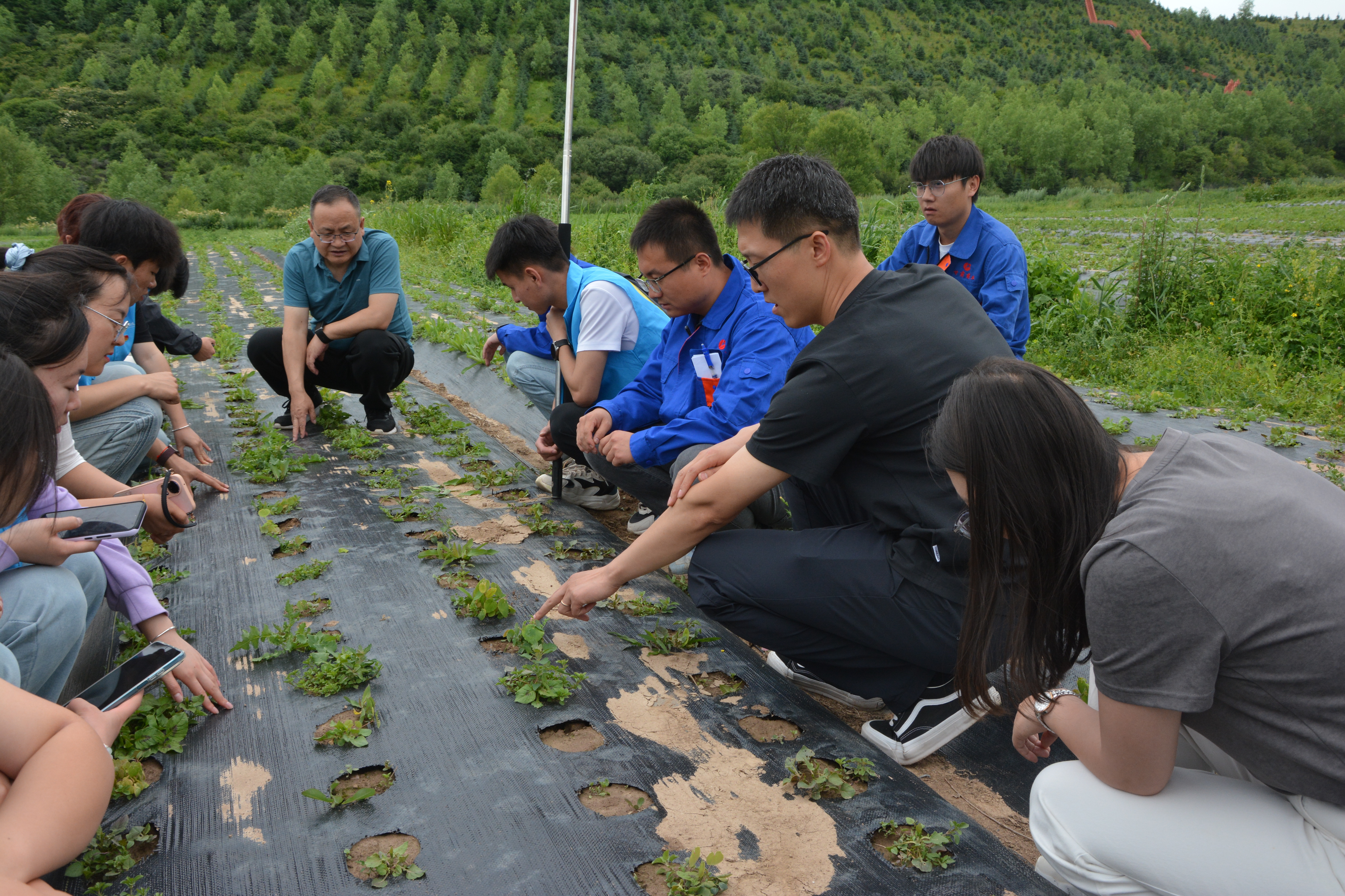 活動(dòng)中,師生們深入田間地頭,在當(dāng)歸、黨參、淫羊藿等中藥材種植區(qū),圍繞種子選種、育種、栽培、田間管理等方面,對(duì)甘肅隴神中藥材有限公司的工作人員進(jìn)行了技術(shù)指導(dǎo)和交流探討;藥學(xué)院專業(yè)教師結(jié)合植物形態(tài)、生長(zhǎng)、病害防治等知識(shí),為學(xué)生現(xiàn)場(chǎng)講解中藥材植物學(xué)知識(shí)要點(diǎn),并帶領(lǐng)學(xué)生在中藥材種植田清除雜草。在甘肅藥業(yè)集團(tuán)隴神中藥材加工車間,師生全方位參觀了清洗、烘干、切片、炮制、包裝等中藥材從原料到中藥飲片的生產(chǎn)流程,并對(duì)加工生產(chǎn)過程中藥材質(zhì)量控制體系的架構(gòu)、傳統(tǒng)炮制方法和工藝的研究、現(xiàn)代化和數(shù)字化設(shè)備的改造應(yīng)用進(jìn)行了指導(dǎo)和探討。在元古堆村文化廣場(chǎng),學(xué)生們通過現(xiàn)場(chǎng)講解,向村民普及中藥養(yǎng)生知識(shí)、辨識(shí)常見藥材,用通俗易懂的語言講述中藥文化傳承故事,激發(fā)村民對(duì)本土中藥材產(chǎn)業(yè)的認(rèn)同感,讓中醫(yī)藥文化“飛入尋常百姓家”。