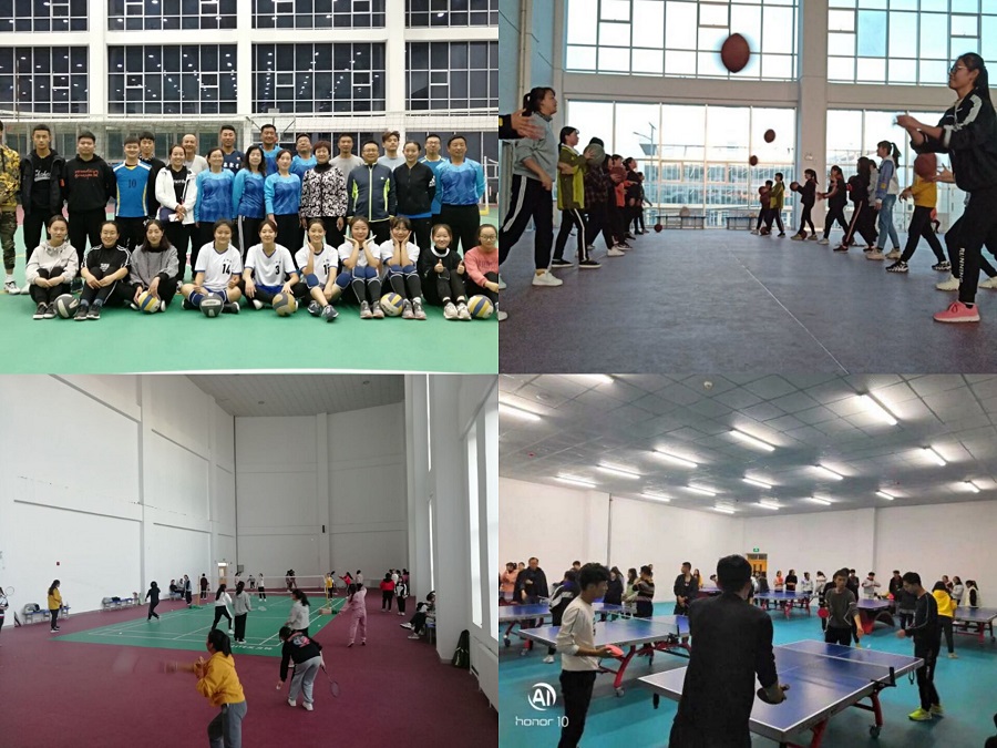 籃球、排球、羽毛球、乒乓球社的同學們在指導老師們的帶領下進行著緊張的訓練和比賽