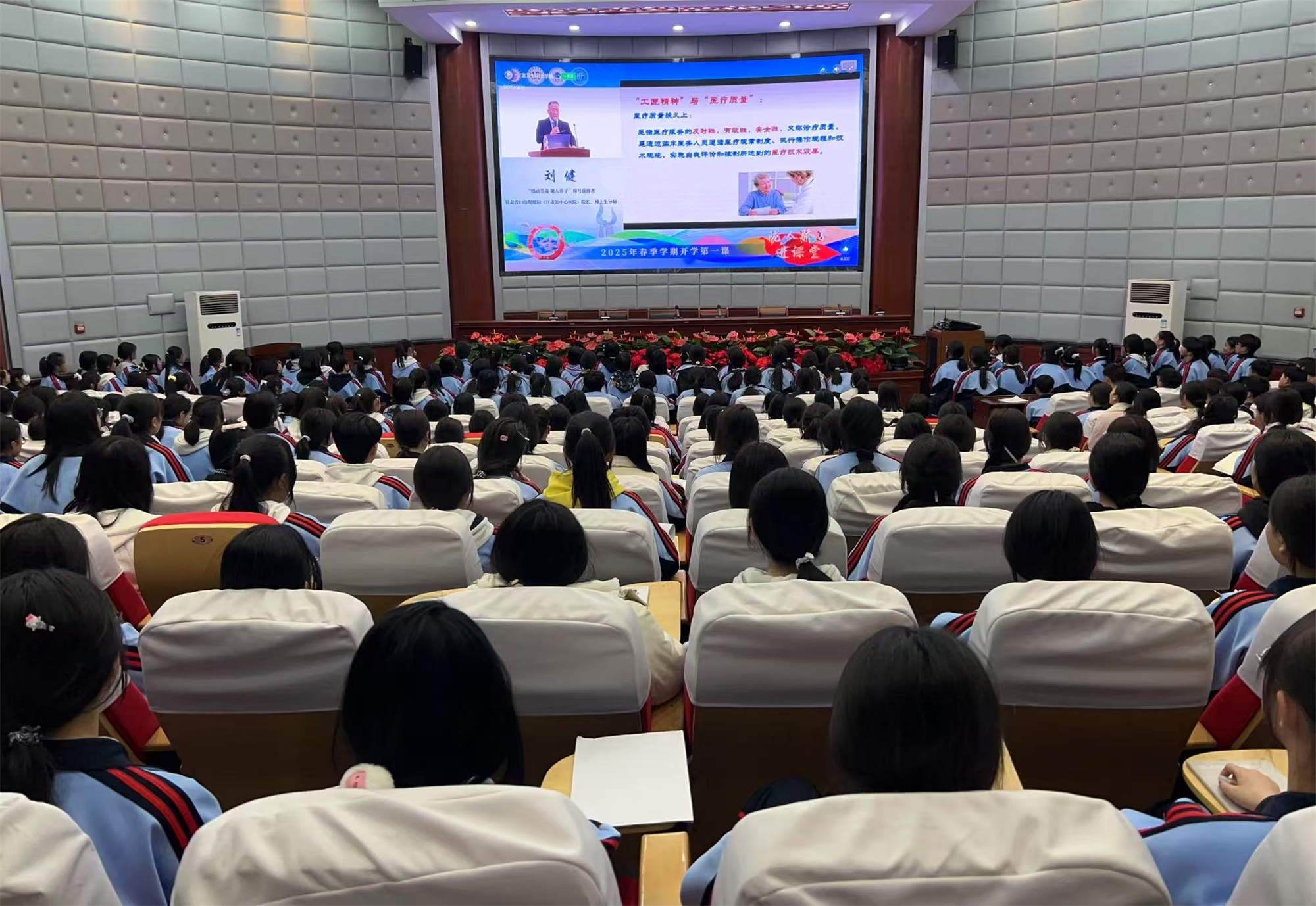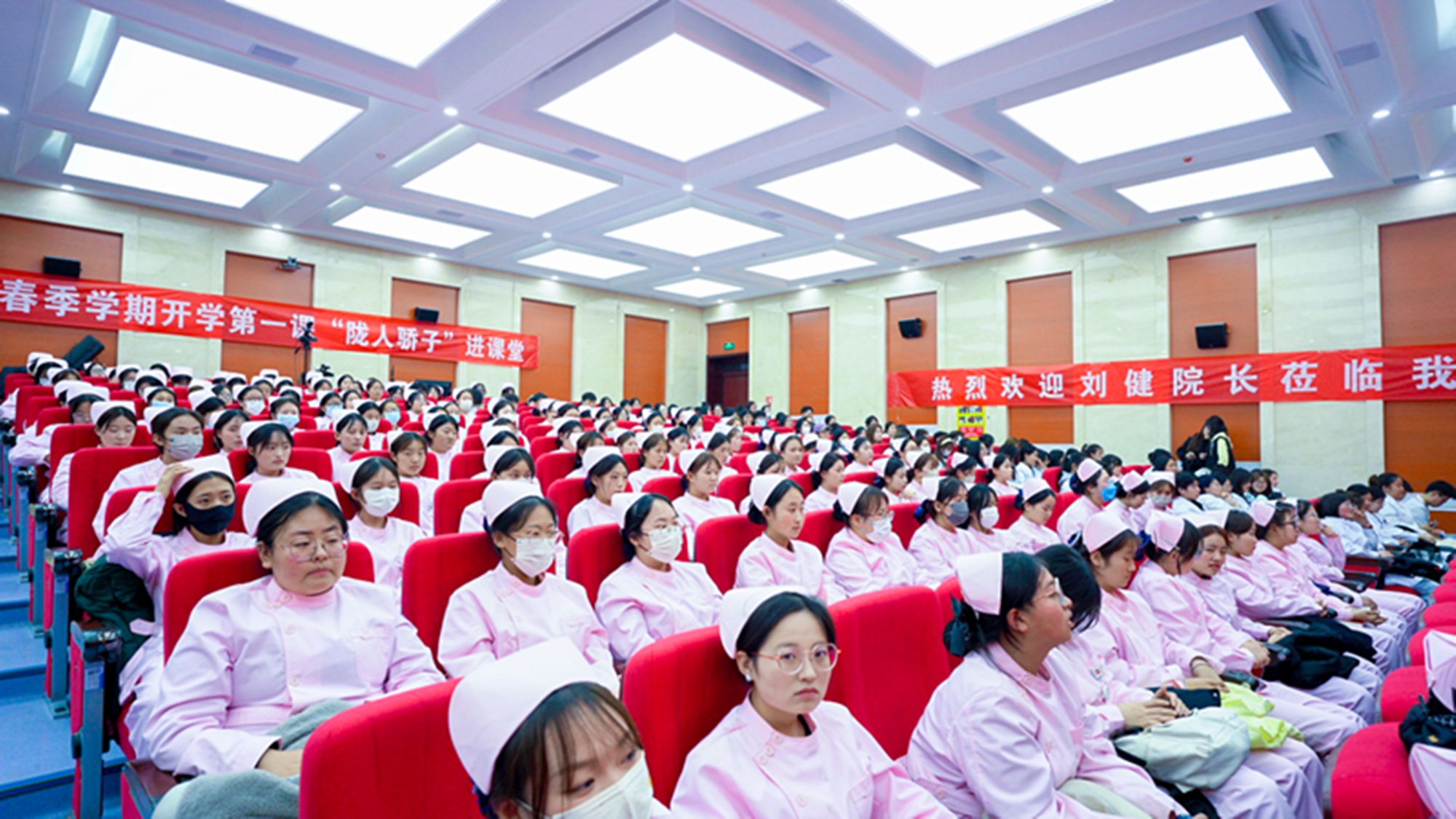 3月3日晚,甘肅衛(wèi)生職業(yè)學(xué)院攜手甘南州衛(wèi)生學(xué)校、隴南市衛(wèi)生學(xué)校、天水市衛(wèi)生學(xué)校以線上線下聯(lián)動(dòng)形式開(kāi)展2025年春季學(xué)期“開(kāi)學(xué)第一課”思想政治教育活動(dòng)。本次活動(dòng)特別邀請(qǐng)到“感動(dòng)甘肅 隴人驕子”榮譽(yù)稱號(hào)獲得者、甘肅省婦幼保健院(甘肅省中心醫(yī)院)黨委副書(shū)記、院長(zhǎng)、博士生導(dǎo)師劉健教授擔(dān)任主講,四校師生通過(guò)云端共聚,開(kāi)啟新學(xué)期的思政教育第一課。活動(dòng)采用“線上直播+分會(huì)場(chǎng)聯(lián)動(dòng)”模式,主會(huì)場(chǎng)設(shè)于甘肅衛(wèi)生職業(yè)學(xué)院篤學(xué)樓學(xué)術(shù)報(bào)告廳,全部在校班級(jí)教室及三所衛(wèi)校設(shè)分會(huì)場(chǎng),全體實(shí)習(xí)生通過(guò)微信公眾號(hào)、抖音直播等平臺(tái)同步參與,四校共一萬(wàn)七千余人參加活動(dòng),直播線上觀看數(shù)達(dá)到7626人次。學(xué)校全體在家校領(lǐng)導(dǎo)現(xiàn)場(chǎng)出席活動(dòng),黨委副書(shū)記、校長(zhǎng)王建成主持活動(dòng)。