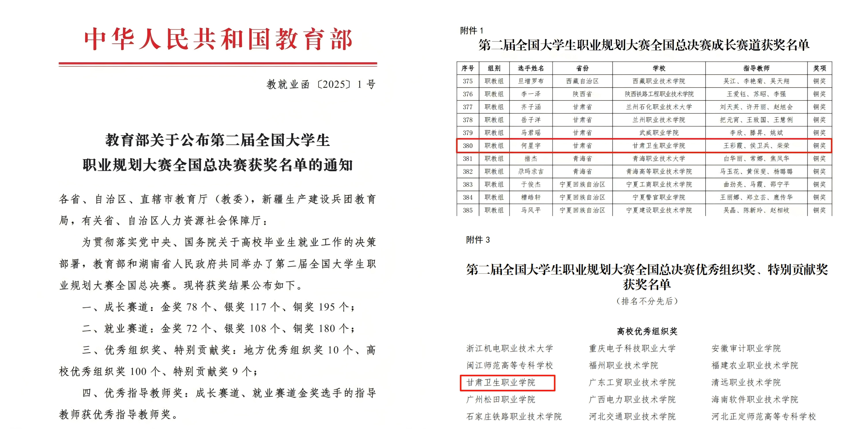 近日,教育部正式公布第二屆全國(guó)大學(xué)生職業(yè)規(guī)劃大賽全國(guó)總決賽獲獎(jiǎng)名單,我校中醫(yī)學(xué)院2023級(jí)針灸推拿專業(yè)學(xué)生何星宇榮獲成長(zhǎng)賽道(職教組)全國(guó)銅獎(jiǎng),學(xué)校獲評(píng)全國(guó)“高校優(yōu)秀組織獎(jiǎng)”,是本屆大賽中甘肅省唯一獲此獎(jiǎng)的高校。“雙獎(jiǎng)”的獲得,實(shí)現(xiàn)了學(xué)校在此類國(guó)家級(jí)賽事中的獎(jiǎng)項(xiàng)榮譽(yù)的歷史性突破。
