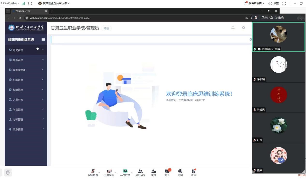 為提升教師教學(xué)水平,2025年3月6日晚,臨床醫(yī)學(xué)院舉辦了教師教學(xué)模擬軟件應(yīng)用線上培訓(xùn)。學(xué)院領(lǐng)導(dǎo)及全體教師參加了此次培訓(xùn)。