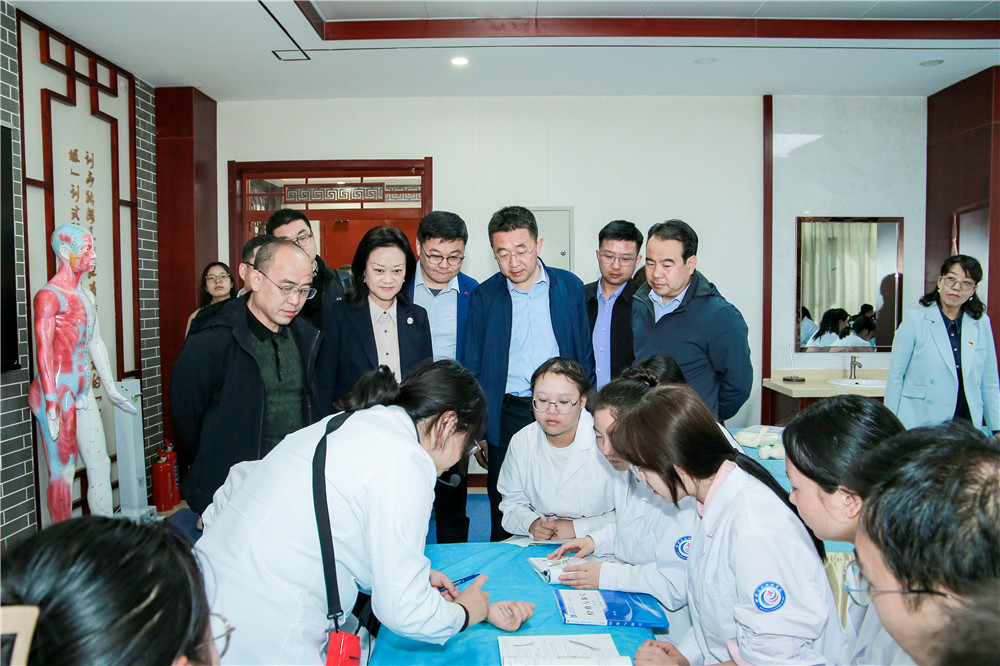 會(huì)后,與會(huì)人員參觀了中醫(yī)藥學(xué)院實(shí)訓(xùn)中心,饒有興致地旁聽了正在進(jìn)行的經(jīng)絡(luò)與腧穴等相關(guān)實(shí)訓(xùn)課程,對(duì)實(shí)訓(xùn)中心現(xiàn)代化、信息化的設(shè)備及極具人文氣息的中醫(yī)藥文化氛圍給予了肯定,共同探討了中醫(yī)藥教學(xué)、實(shí)踐等相關(guān)內(nèi)容。