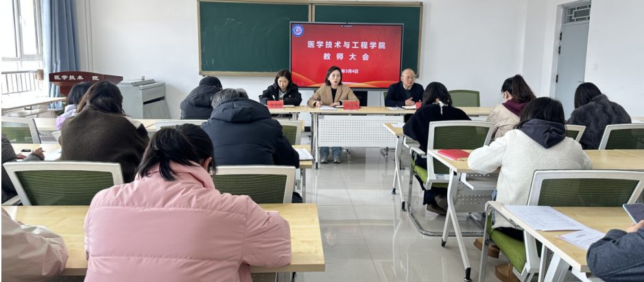 為統(tǒng)籌推進(jìn)新學(xué)期各項工作有序開展,醫(yī)學(xué)技術(shù)與工程學(xué)院于3月2日、3月4日組織召開行政工作會議和全體教師大會。學(xué)院領(lǐng)導(dǎo)、行政人員、教研室主任、實(shí)驗(yàn)實(shí)訓(xùn)輔導(dǎo)教師及全體專職教師參加了會議。