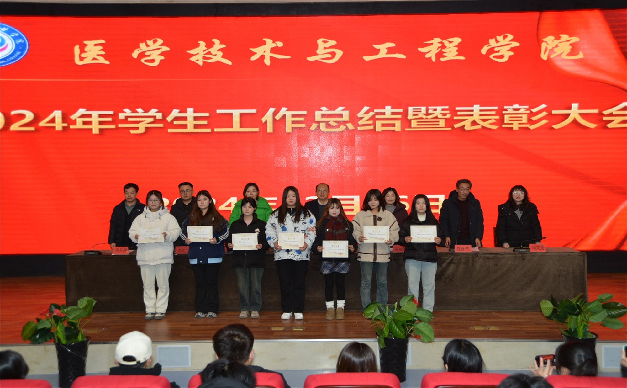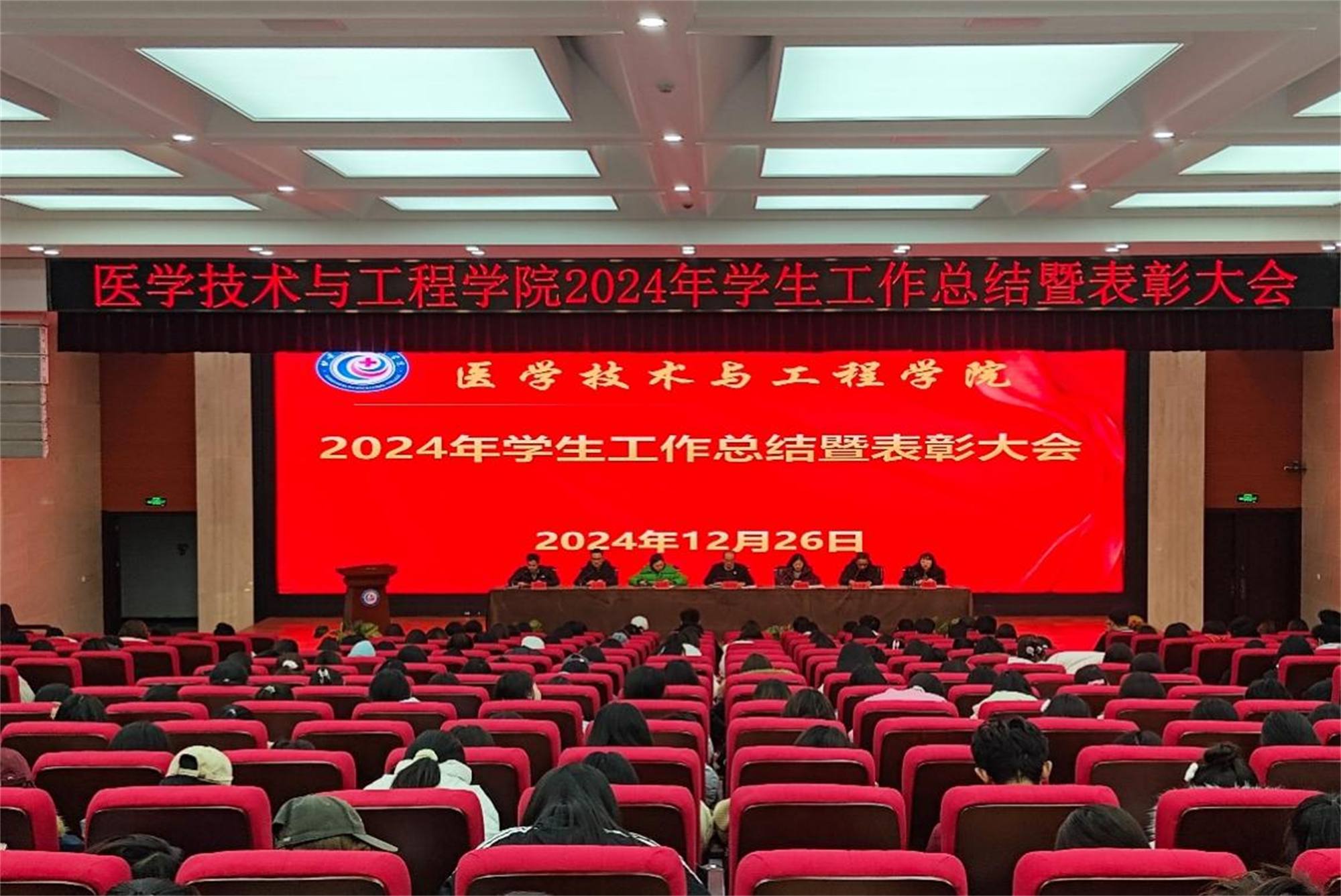 為總結(jié)2024年學生工作,表彰先進,發(fā)揮榜樣力量,12月26日晚,醫(yī)學技術(shù)與工程學院在一號教學樓報告廳組織召開“2024年學生工作總結(jié)暨表彰大會”。學院黨總支書記、院長、副院長、檢驗教研室主任、影像教研室主任、學院職能辦公室負責人、輔導員、獲獎學生代表、各班級學生代表等四百余人參加了本次會議,會議由學院副院長主持。