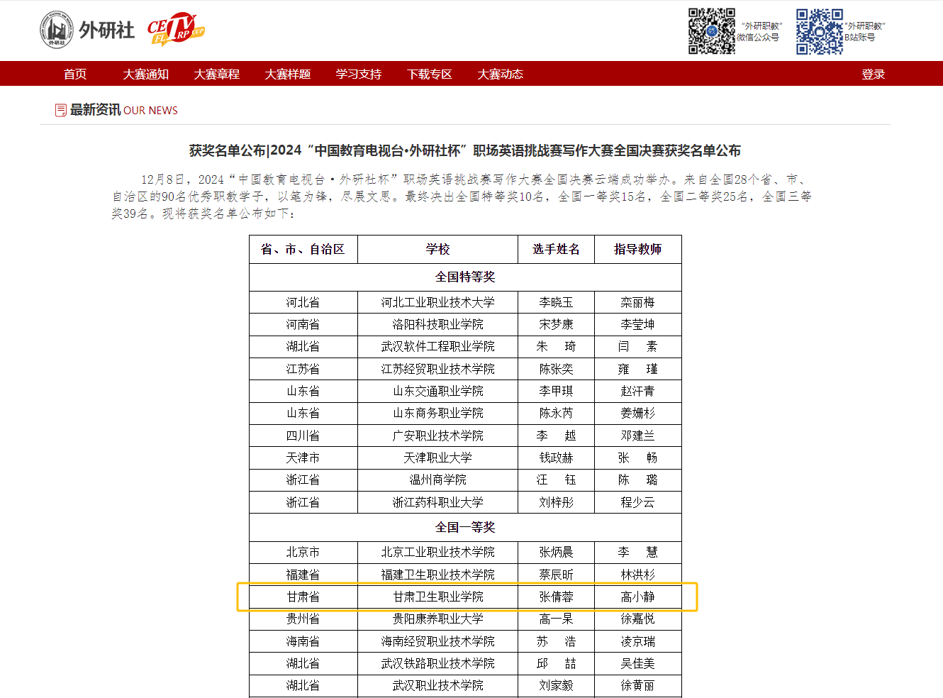 我校學(xué)生在2024“中國(guó)教育電視臺(tái)·外研社杯”職場(chǎng)英語(yǔ)挑戰(zhàn)賽全國(guó)決賽中喜獲佳績(jī)