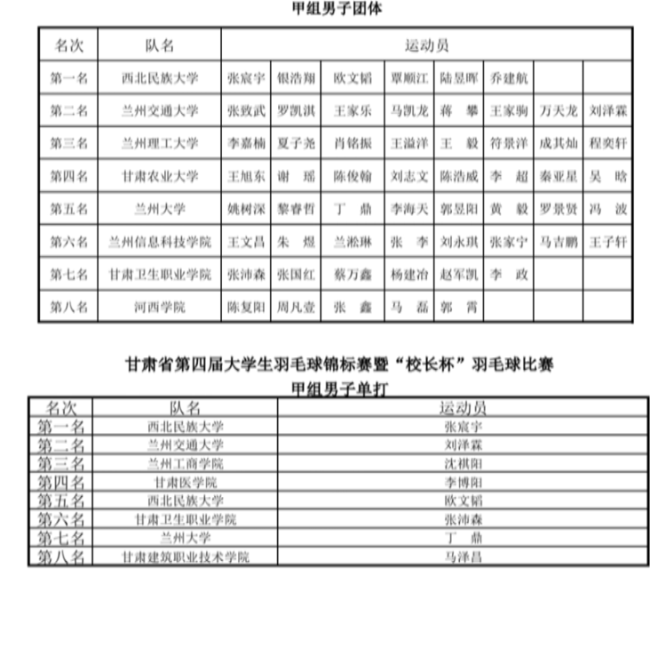 5月20日甘肅省第四屆大學(xué)生羽毛球錦標(biāo)賽正式落下帷幕。本次比賽共有34所高校,共590余名運(yùn)動(dòng)員參加,經(jīng)過四天激烈的競(jìng)爭(zhēng),898場(chǎng)激烈的角逐,我校羽毛球代表隊(duì)秉持“賽意志、賽風(fēng)格、賽水平”的信念,與本科院校同臺(tái)競(jìng)技,憑借默契的團(tuán)隊(duì)協(xié)作和出色的個(gè)人發(fā)揮,在單打、雙打項(xiàng)目中均有出色發(fā)揮,突破性獲得男子單打第六名和男子團(tuán)體第七名的好成績(jī),值得一提的是,我校男子團(tuán)體代表隊(duì)是獲獎(jiǎng)隊(duì)伍中唯一一所高職院校。