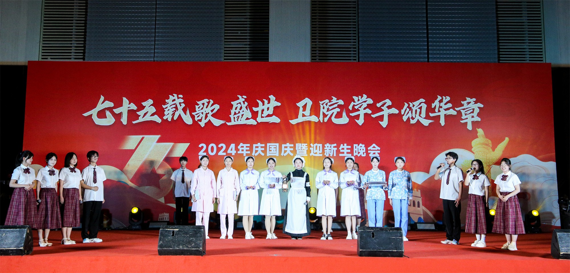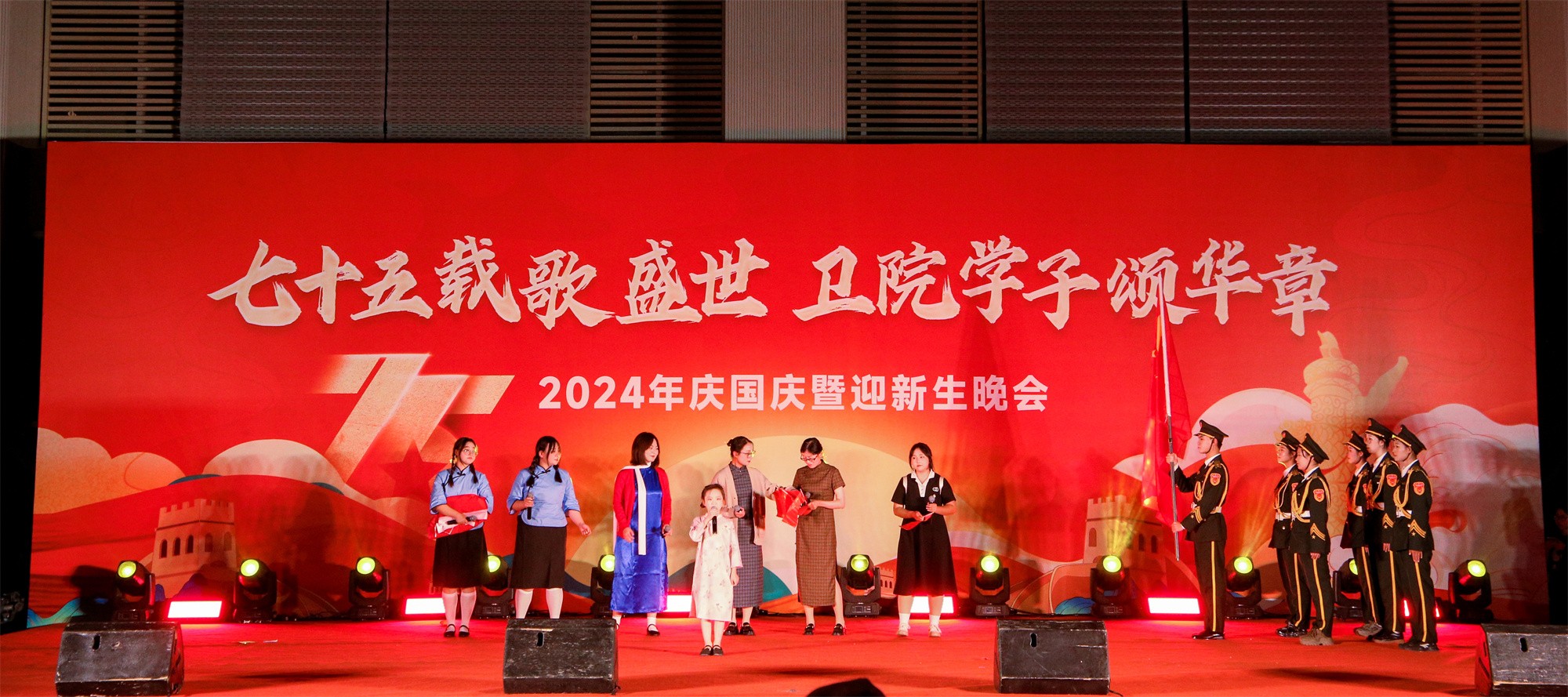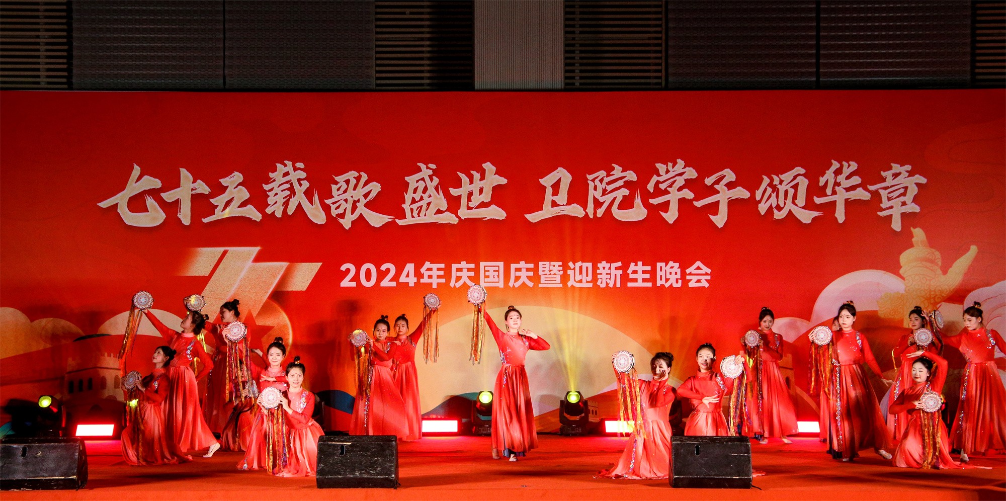 為慶祝中華人民共和國成立75周年,弘揚(yáng)愛國主義精神,激發(fā)師生的民族自豪感和愛國熱情,并表達(dá)對(duì)2024級(jí)新生的歡迎,由我校團(tuán)委主辦,黨委宣傳部、學(xué)生工作處、服務(wù)保障處、安全穩(wěn)定與保衛(wèi)處、甘肅省勤篤信息科技有限責(zé)任公司、各二級(jí)學(xué)院、體育教學(xué)部等共同協(xié)辦的“七十五載歌盛世 衛(wèi)院學(xué)子頌華章”慶國慶暨迎新生晚會(huì)于9月26日晚在學(xué)校體育館拉開帷幕。