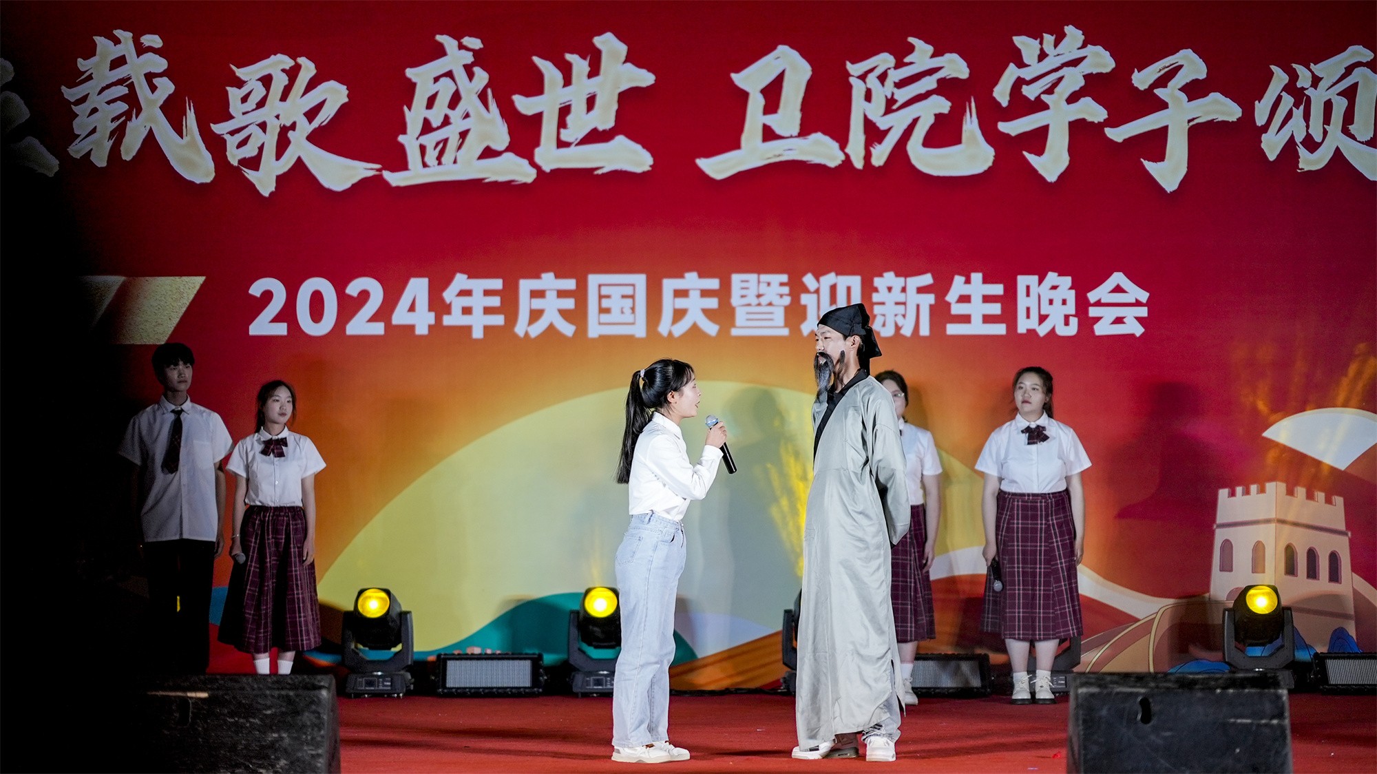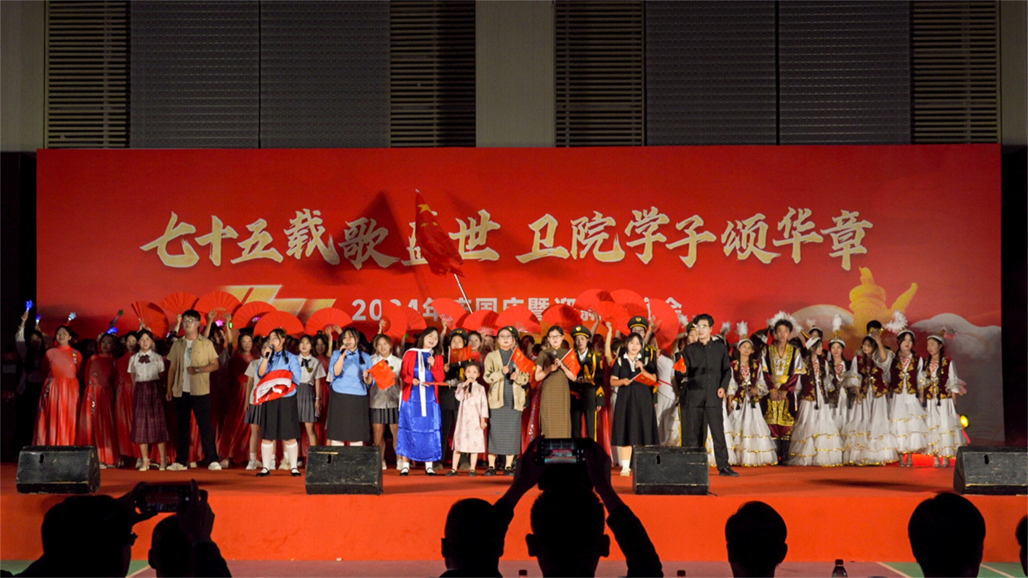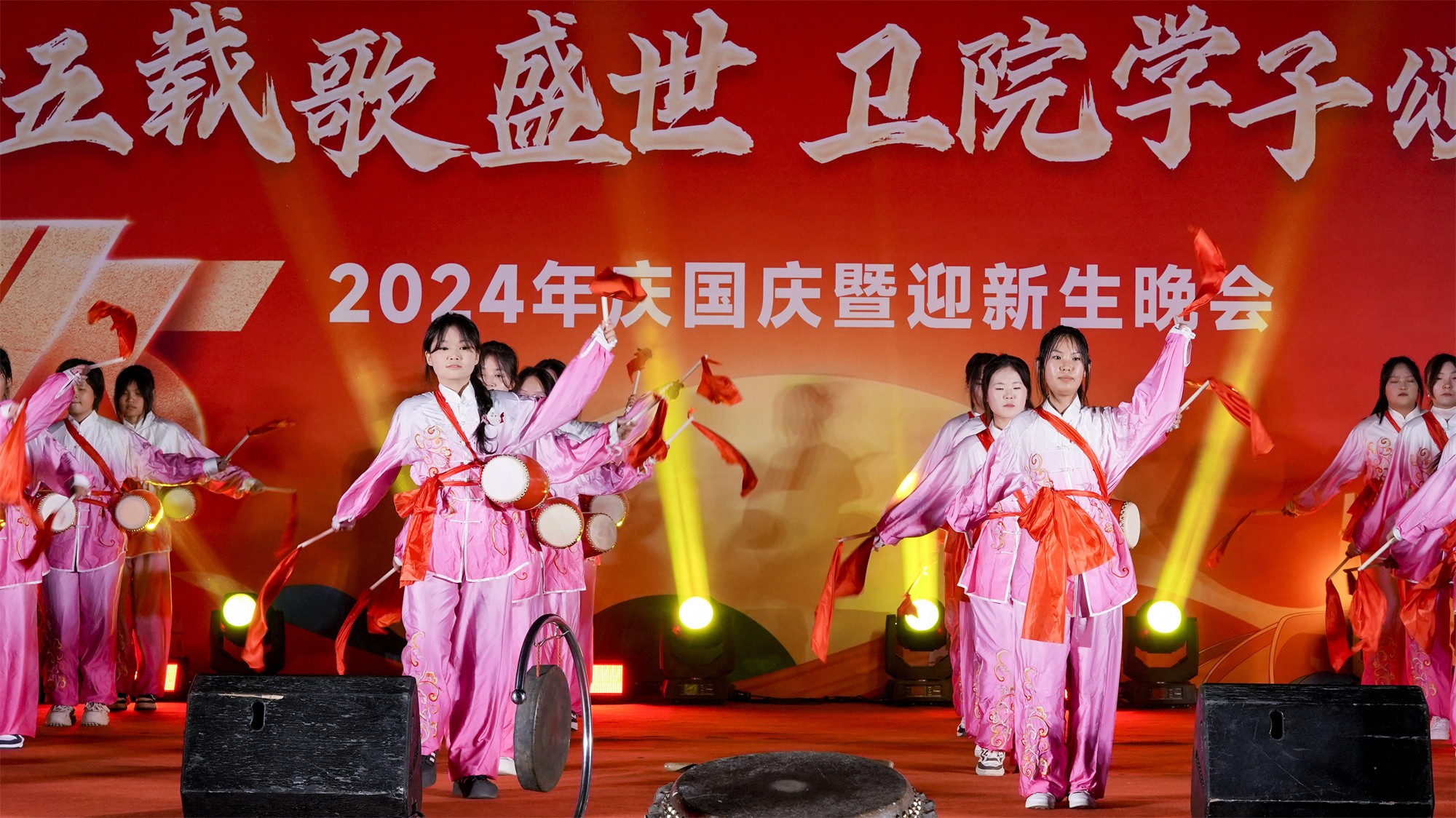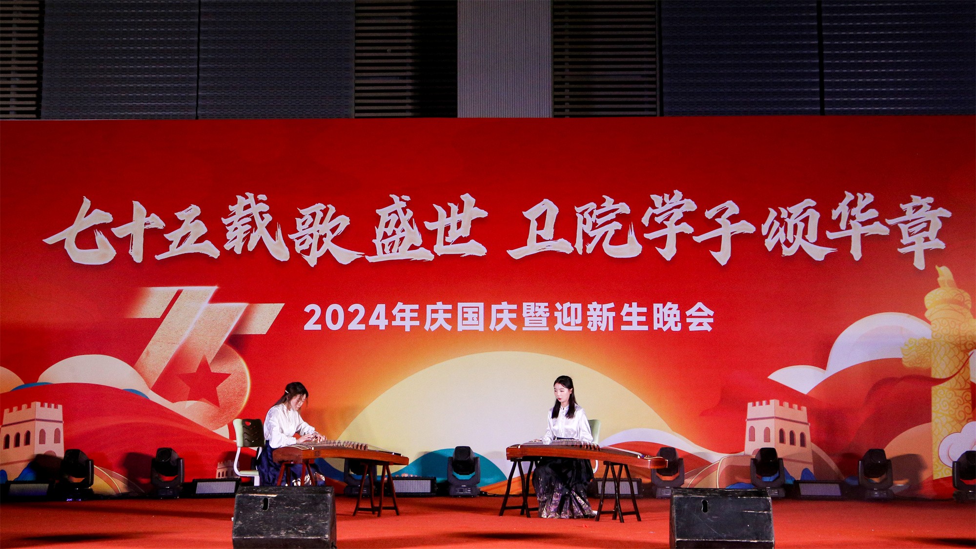 為慶祝中華人民共和國成立75周年,弘揚(yáng)愛國主義精神,激發(fā)師生的民族自豪感和愛國熱情,并表達(dá)對(duì)2024級(jí)新生的歡迎,由我校團(tuán)委主辦,黨委宣傳部、學(xué)生工作處、服務(wù)保障處、安全穩(wěn)定與保衛(wèi)處、甘肅省勤篤信息科技有限責(zé)任公司、各二級(jí)學(xué)院、體育教學(xué)部等共同協(xié)辦的“七十五載歌盛世 衛(wèi)院學(xué)子頌華章”慶國慶暨迎新生晚會(huì)于9月26日晚在學(xué)校體育館拉開帷幕。