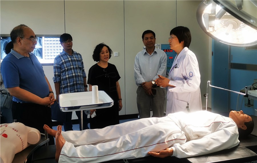 執(zhí)法檢查組一行首先對我校基礎建設、校園環(huán)境進行了實地考察,并深入學校臨床護理學院等教學單位開展了調(diào)研,檢查組詳細了解學校辦學條件、專業(yè)設置、招生就業(yè)、教育教學現(xiàn)狀,深入實驗實訓中心、觀摩實驗實訓課,與師生進行廣泛深入的交流。考察結束后,在學校615會議室召開了座談會,座談會由蘭州新區(qū)職教園區(qū)管委會副主任朱廷珺主持。