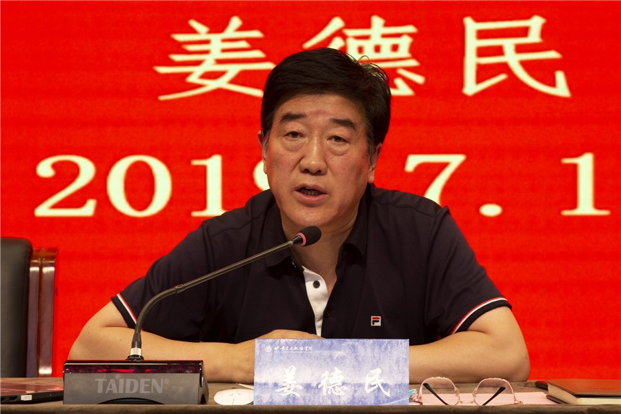 7月12日上午,學校2018-2019年度第二學期期末總結大會在一號學術報告廳召開,黨委書記姜德民、校長任暉及在家校領導、全校教職工400余人參加了會議,會議由黨委書記姜德民主持。